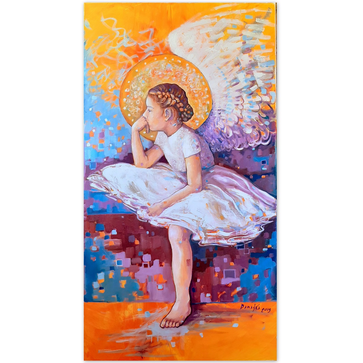 Obraz namalowany na wystawę „Rokocińska szkoła Anioła”, która odbyła się w Muzeum Ziemi Kociewskiej w Starogardzie Gdańskim w czerwcu 2020r. Wystawa była zorganizowana przez Grupę Twórczą z Rokocina, działającą przy tamtejszym Domu Pomocy Społecznej, z którą to grupą miałam zaszczyt pracować przez prawie 2 lata.