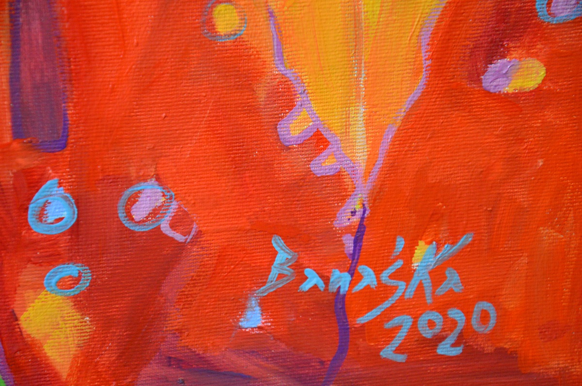 Oryginał. Rok powstania: 2020. Technika: olej. Podobrazie: płótno bawełniane naciągnięte na drewnianą ramę. Rozmiar obrazu: wysokość 50cm, szerokość 70cm. Boki obrazu zamalowane w kolorystyce obrazu. Kolory obrazu mogą nieznacznie różnić się od oryginału w zależności od kalibracji monitorów.