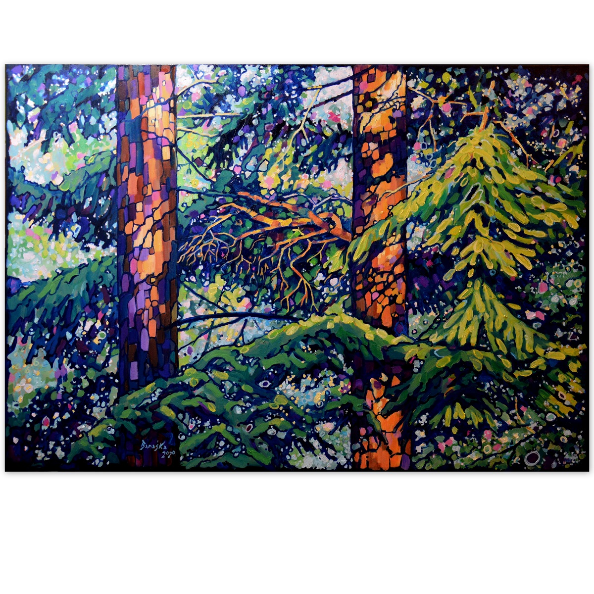 Oryginał. Rok powstania: 2020. Technika: olej. Podobrazie: płótno bawełniane naciągnięte na drewnianą ramę. Rozmiar obrazu: wysokość 70cm, szerokość 100cm. Boki obrazu zamalowane w kolorystyce obrazu. Kolory obrazu mogą nieznacznie różnić się od oryginału w zależności od kalibracji monitorów.