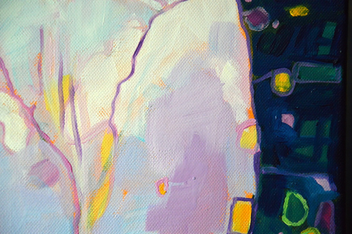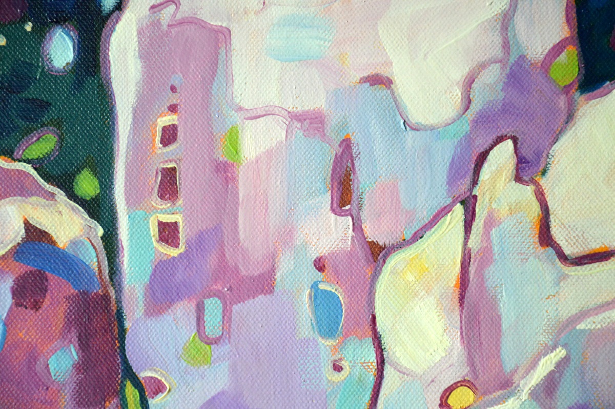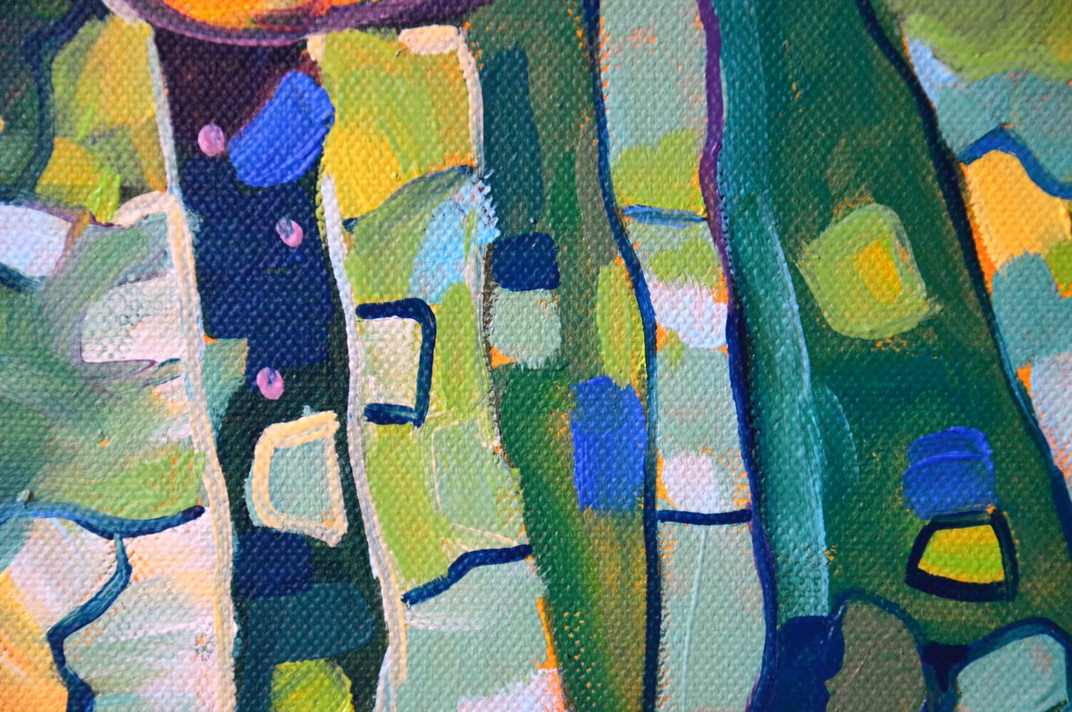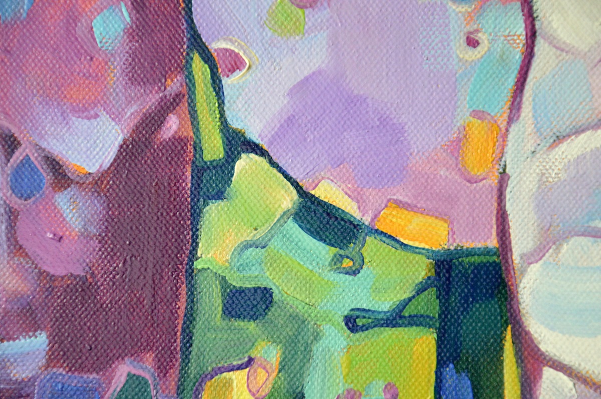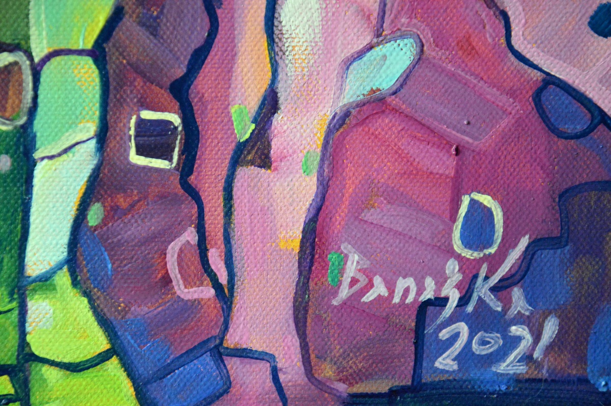 Oryginał. Rok powstania: 2021. Technika: olej. Podobrazie: płótno bawełniane naciągnięte na drewnianą ramę. Rozmiar obrazu: wysokość 50cm, szerokość 70cm. Boki obrazu zamalowane na czarno. Kolory obrazu mogą nieznacznie różnić się od oryginału w zależności od kalibracji monitorów.