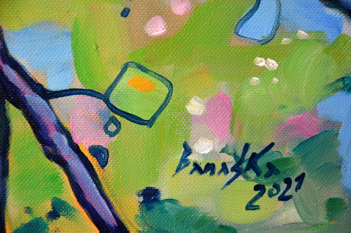 Oryginał. Rok powstania: 2021. Technika: olej. Podobrazie: płótno bawełniane naciągnięte na drewnianą ramę. Rozmiar obrazu: wysokość 50cm, szerokość 70cm. Boki obrazu zamalowane na czarno. Kolory obrazu mogą nieznacznie różnić się od oryginału w zależności od kalibracji monitorów.