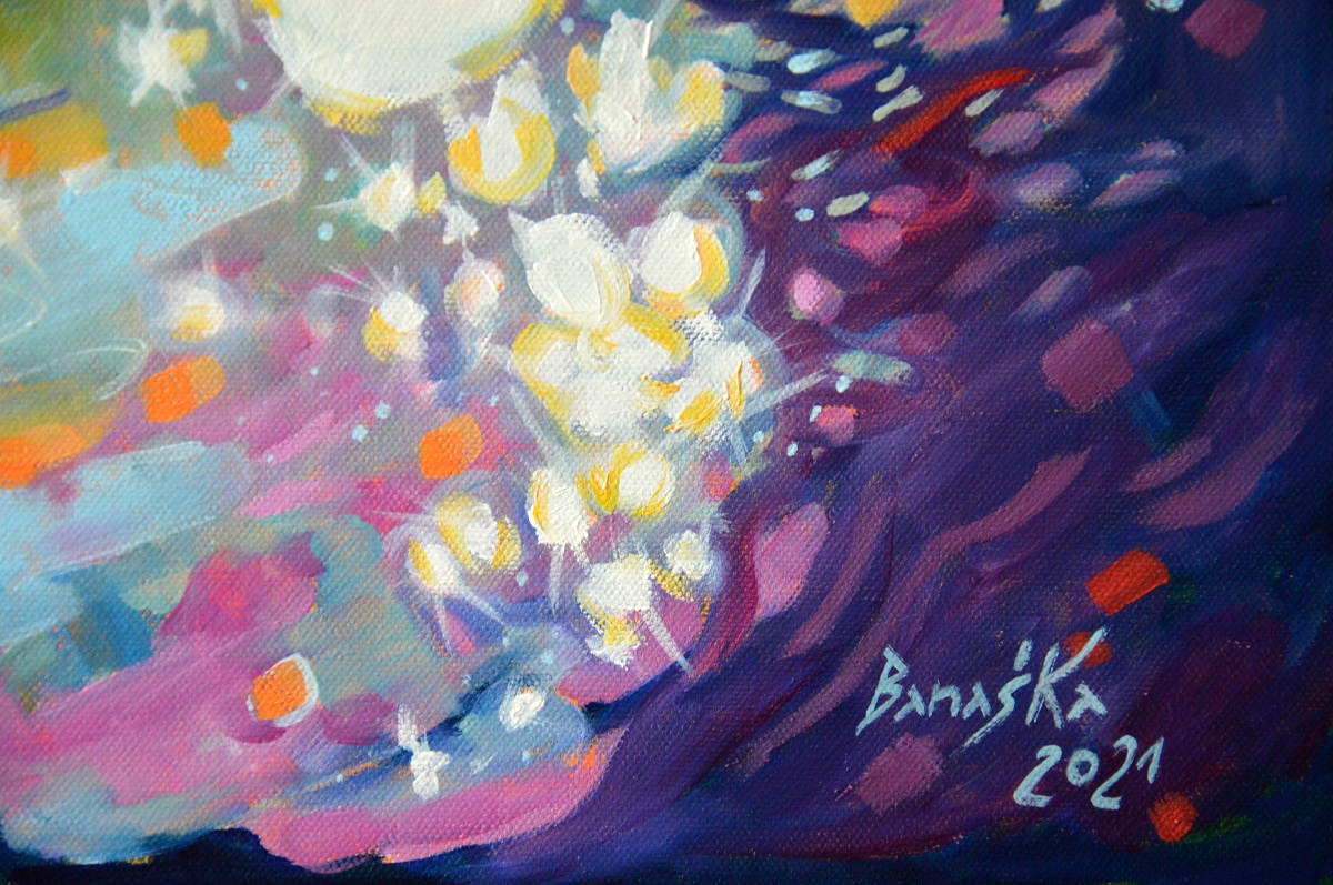 Oryginał. Rok powstania: 2021. Technika: olej. Podobrazie: płótno bawełniane naciągnięte na drewnianą ramę. Rozmiar obrazu: wysokość 65cm, szerokość 81cm. Boki obrazu zamalowane w kolorystyce obrazu. Kolory obrazu mogą nieznacznie różnić się od oryginału w zależności od kalibracji monitorów.