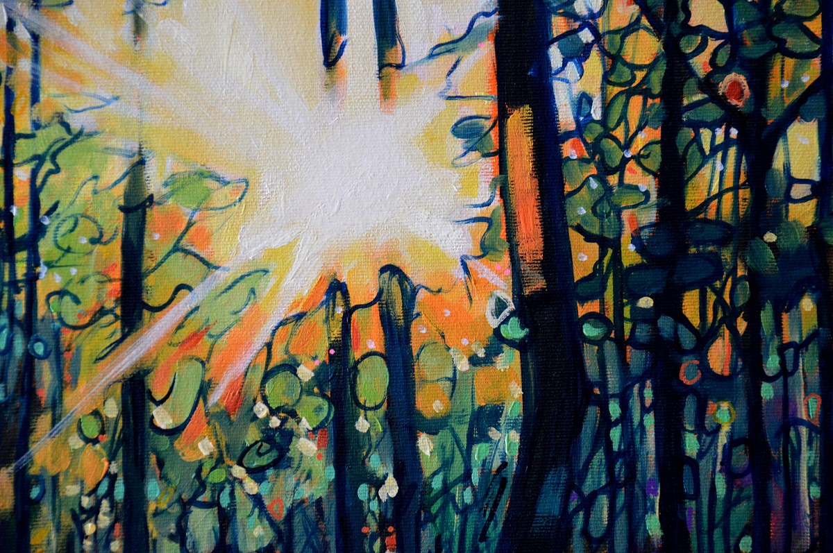 W lesie panuje jeszcze mrok, chłód i wilgoć. Ale słońce już zabiera się do pracy: rozjaśnia, grzeje i wysusza. Maluje w lesie nowe kolory, jasne i soczyste. Zaczyna od liści. Złoci je, by stały się lekkie i zwiewne. Sięga głębiej do konarów i pni. Rysuje zawiłe ksztalty runa i ściółki. Szuka ścieżek i tropów. Rozsiewa blask i energię 🙂