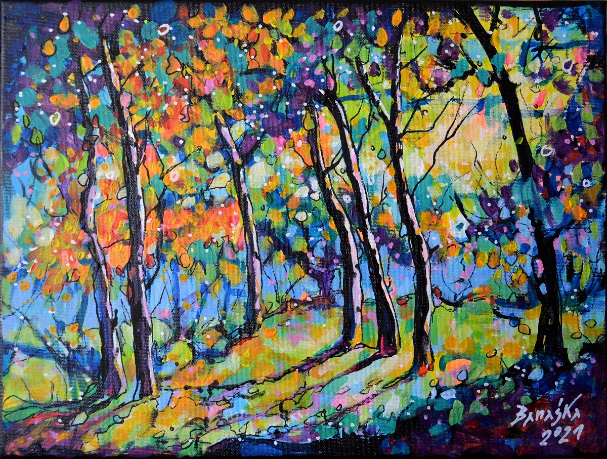 W podświetlanych zaroślach dużo się dzieje. Kolory migoczą. Skrzą się promienie słońca. Bzyczą owady. Wiatr kołysze listowie. Cały ten gąszcz hipnotyzuje…