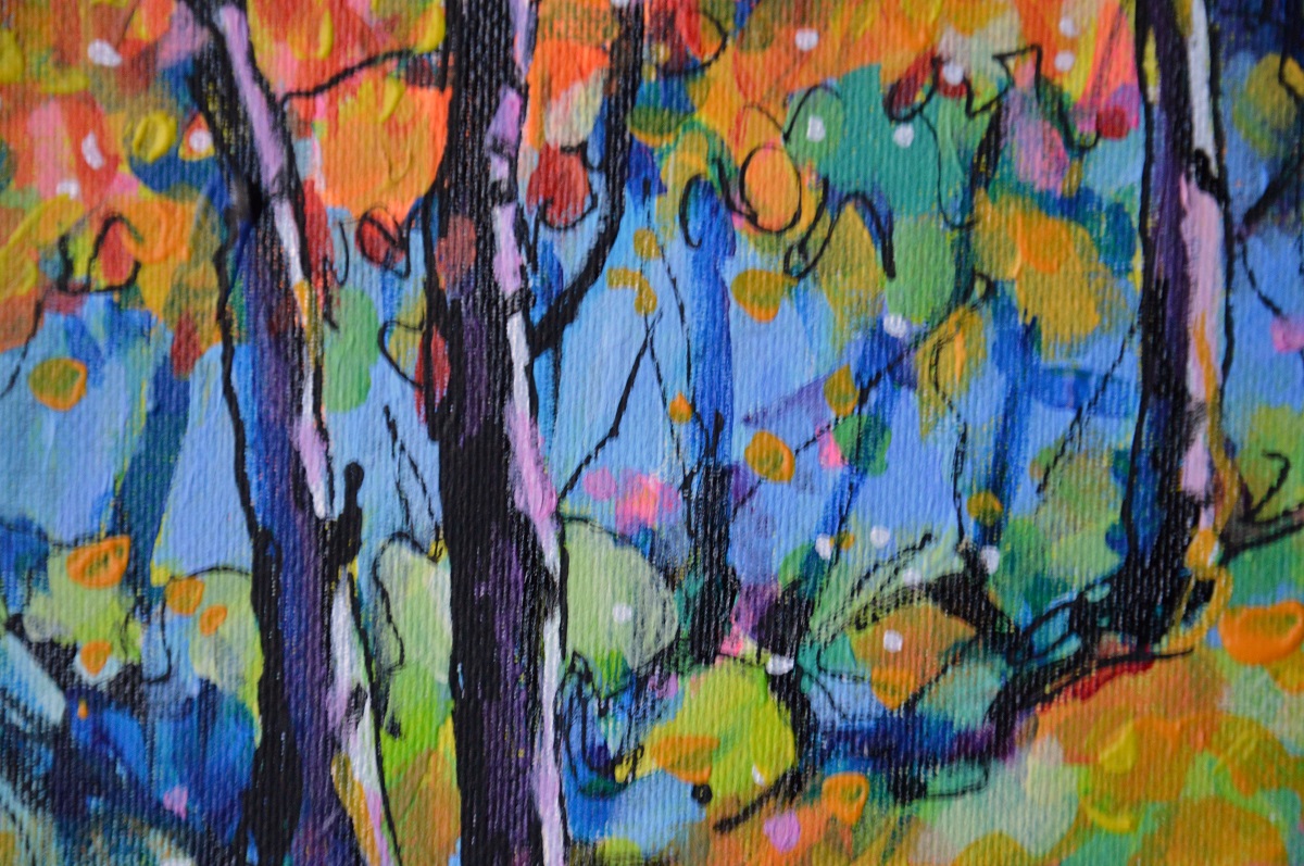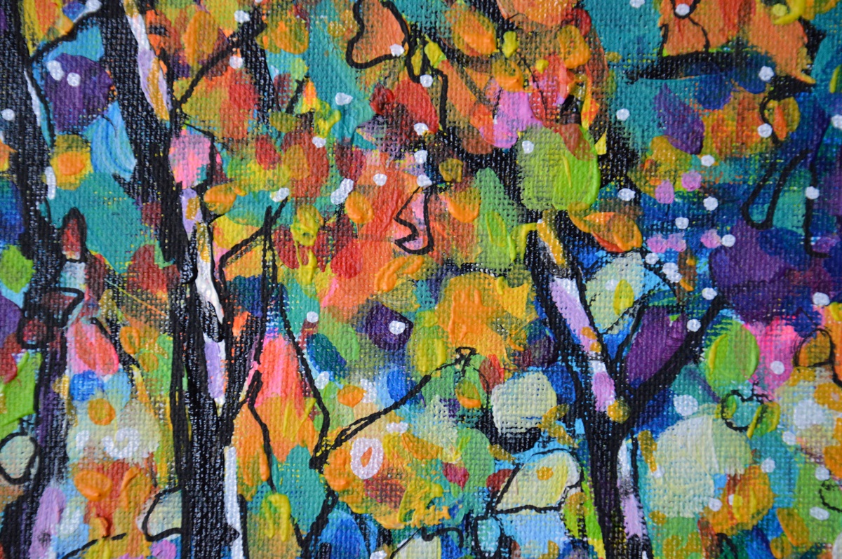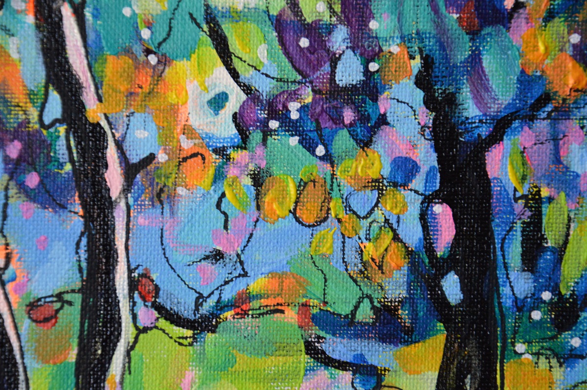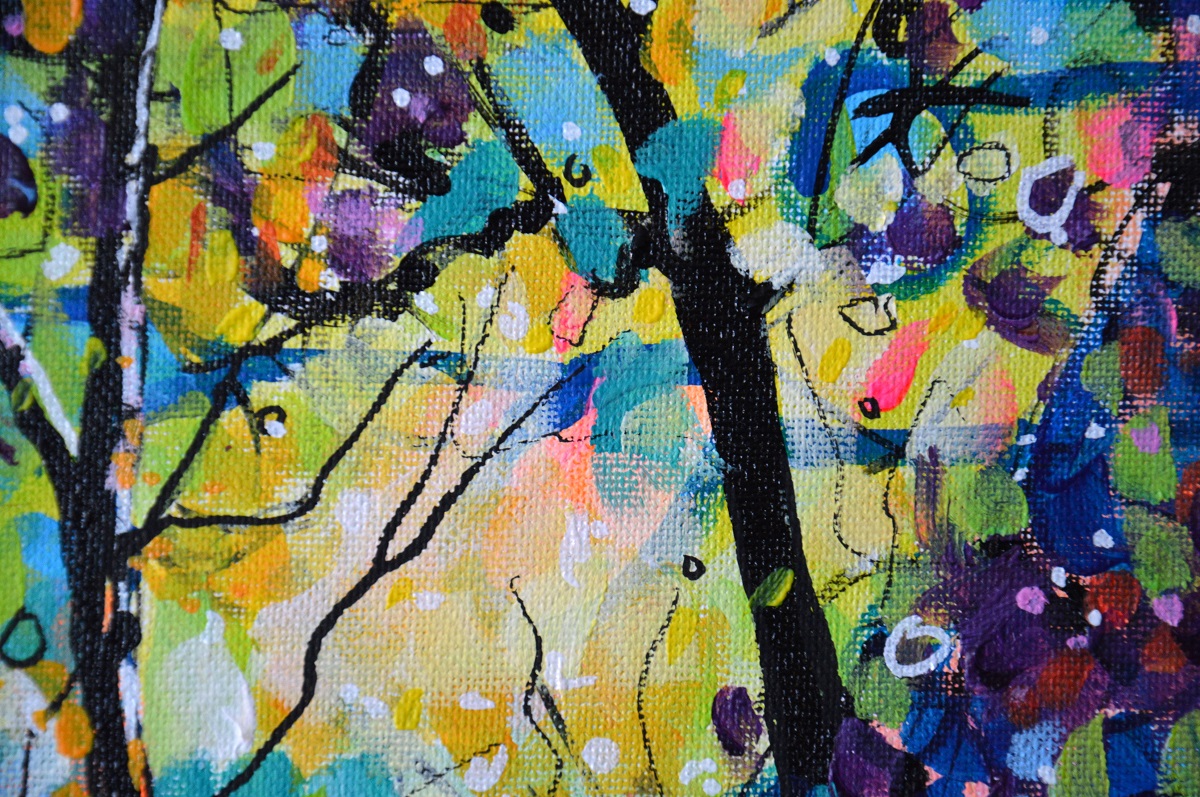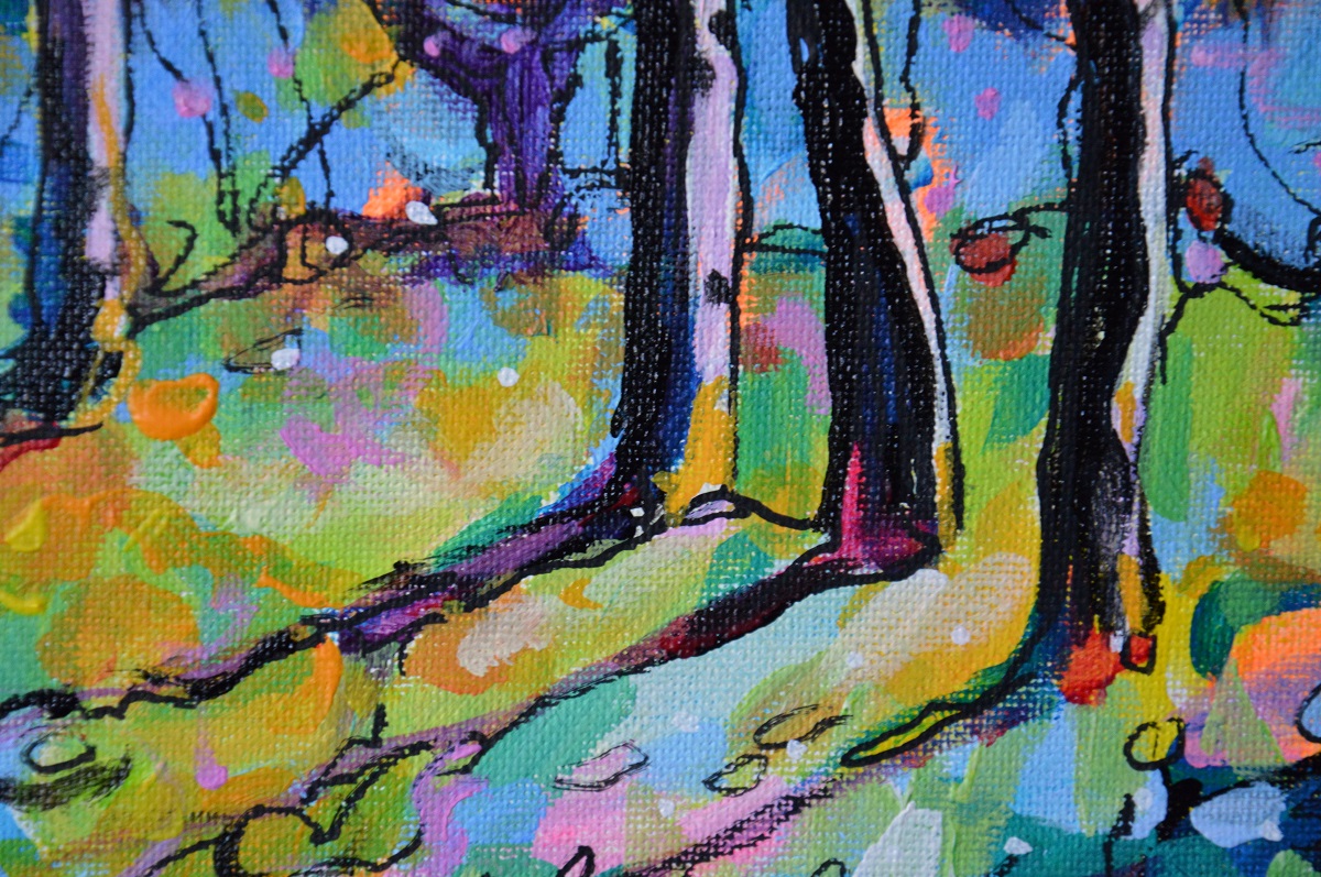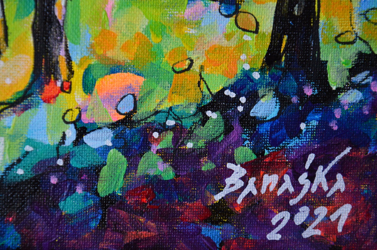 Oryginał. Rok powstania: 2021. Technika mieszna: akryl i pisaki olejne i akrylowe. Podobrazie: płótno bawełniane naciągnięte na drewnianą ramę. Rozmiar obrazu: wysokość 30cm, szerokość 40cm. Boki obrazów zamalowane na czarno. Kolory obrazu mogą nieznacznie różnić się od oryginału w zależności od kalibracji monitorów.