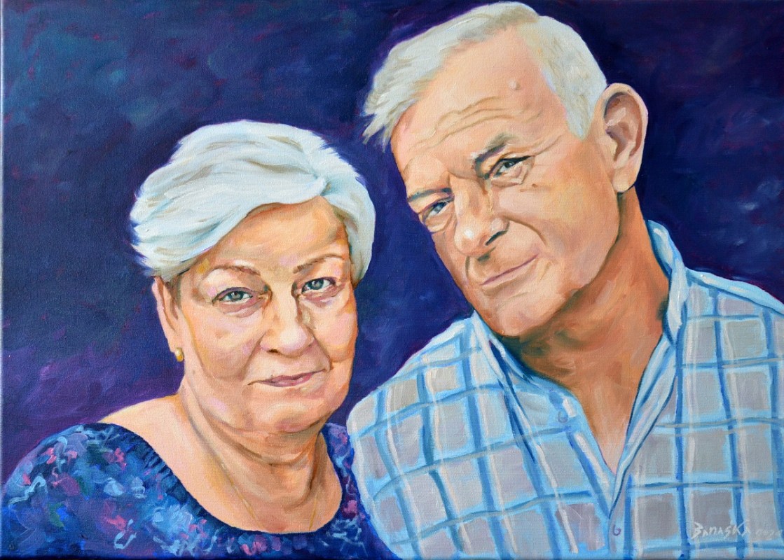 Miałam ostatnio zaszczyt i przyjemność namalowania podwójnego portretu rodziców zanajomego. Takich pozytywnych i ciepłych ludzi maluje się fantastycznie! Dzięki za tę możliwość!