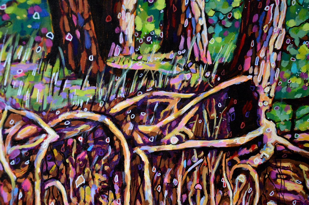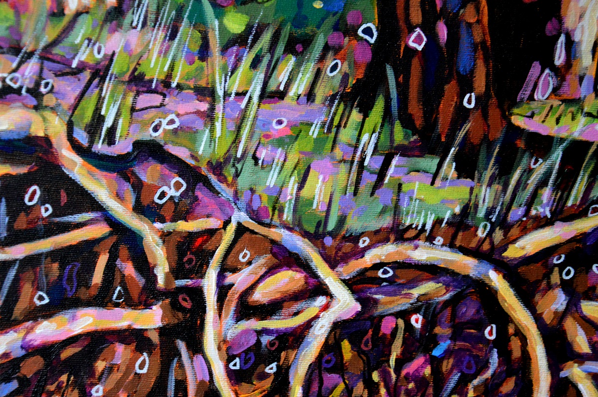 Drzewa, których już nie ma. Rosły na samym skaraju lasu. Odkryta gmatwanina korzeni wyglądała magicznie. Nietety sosny traciły stabilność i zagrażały bezpieczeństwu na drodze. Niestety… Zostały po nich pnie i magiczna gmatwanina korzeni… Ale ja mam moc przywołania ich na obrazach. I będę z niej korzystać!!! 😀