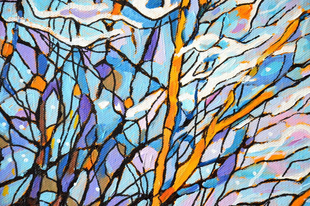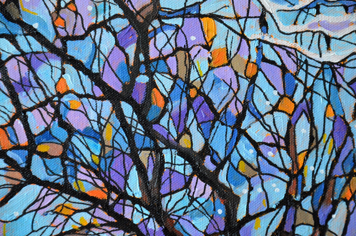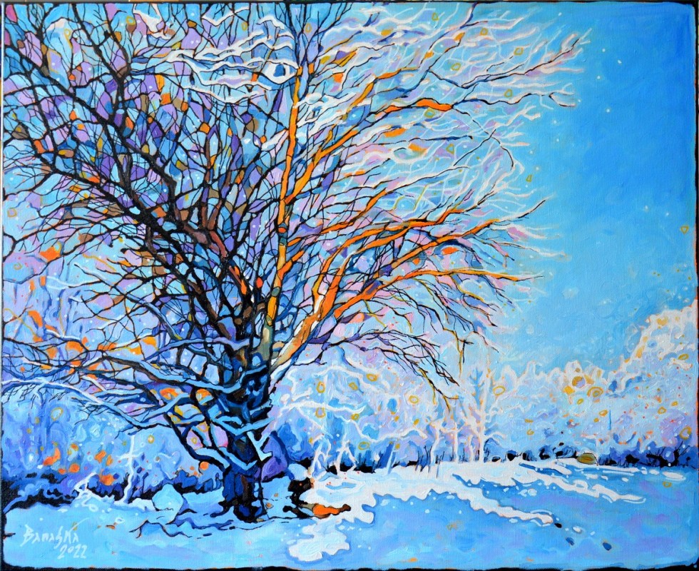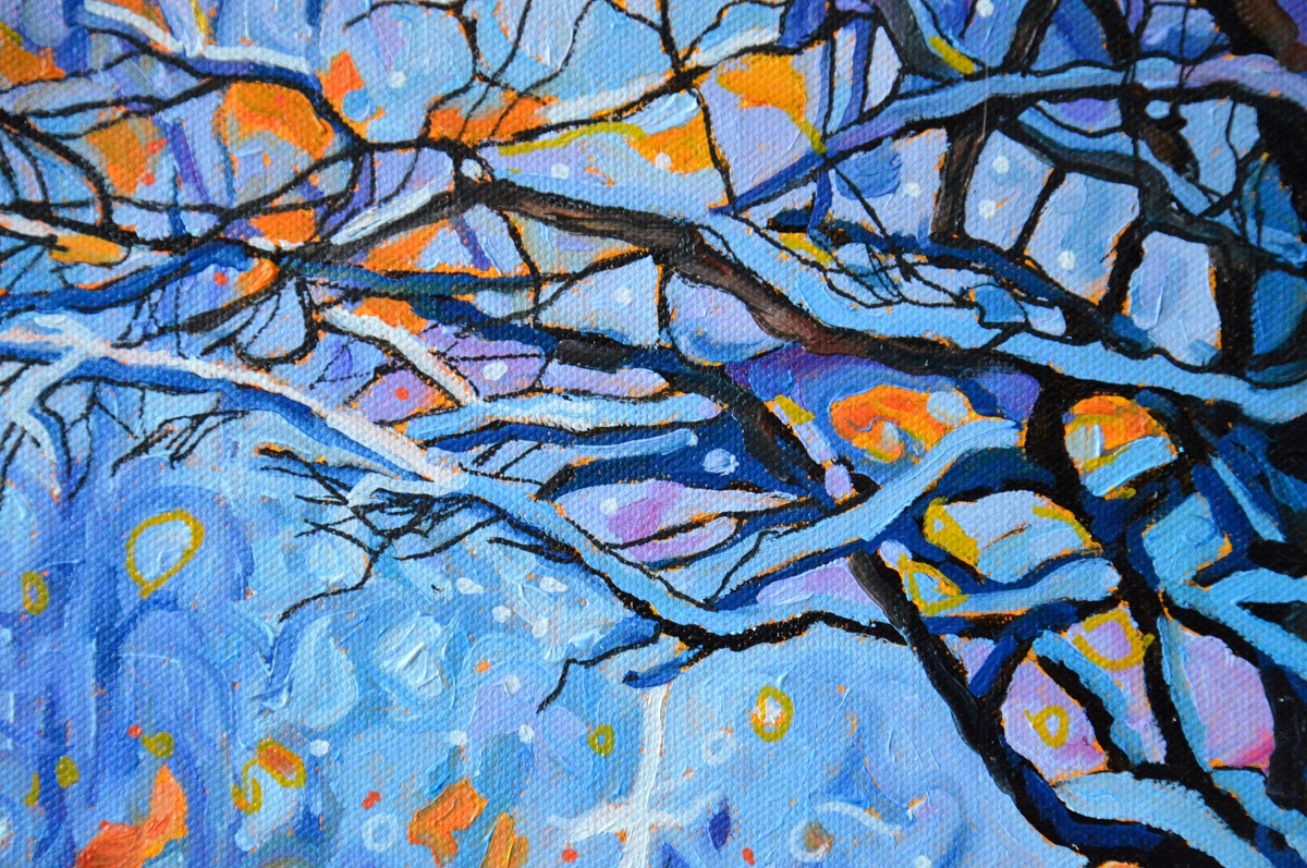 Gęste, nie uczesane gałęzie, pod kołderką śniegu, zmrożone szronem. Gdzieniegdzie iskrzą w słońcu, a gnienegdzie drzemią w cieniu. Zagmatwane i malownicze ich losy. Zatopione w wielkim błękicie.