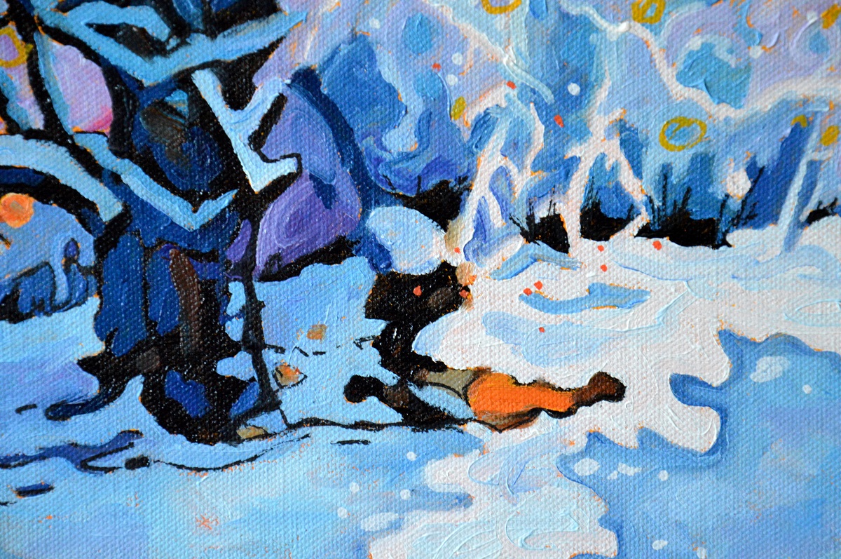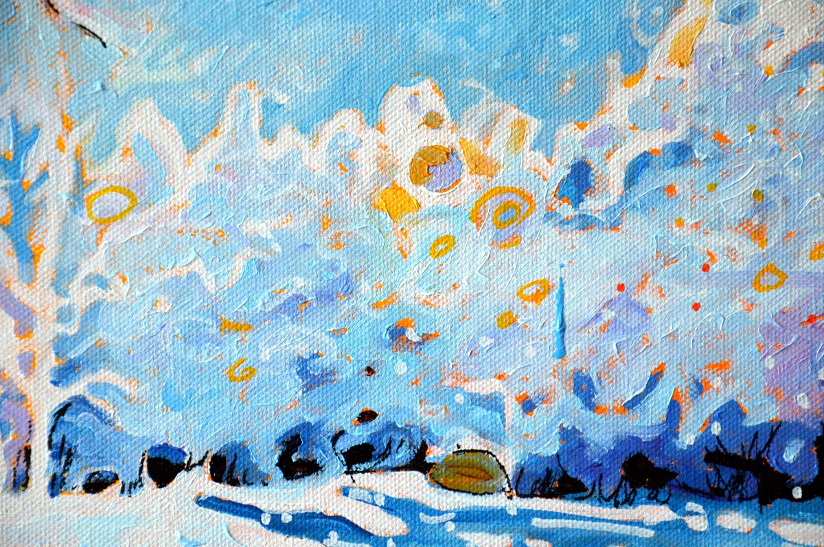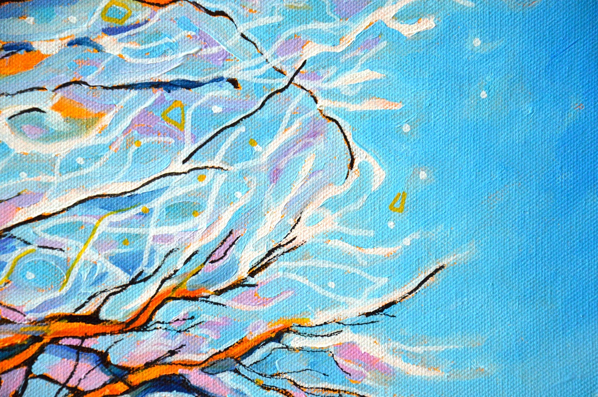 Gęste, nie uczesane gałęzie, pod kołderką śniegu, zmrożone szronem. Gdzieniegdzie iskrzą w słońcu, a gnienegdzie drzemią w cieniu. Zagmatwane i malownicze ich losy. Zatopione w wielkim błękicie.