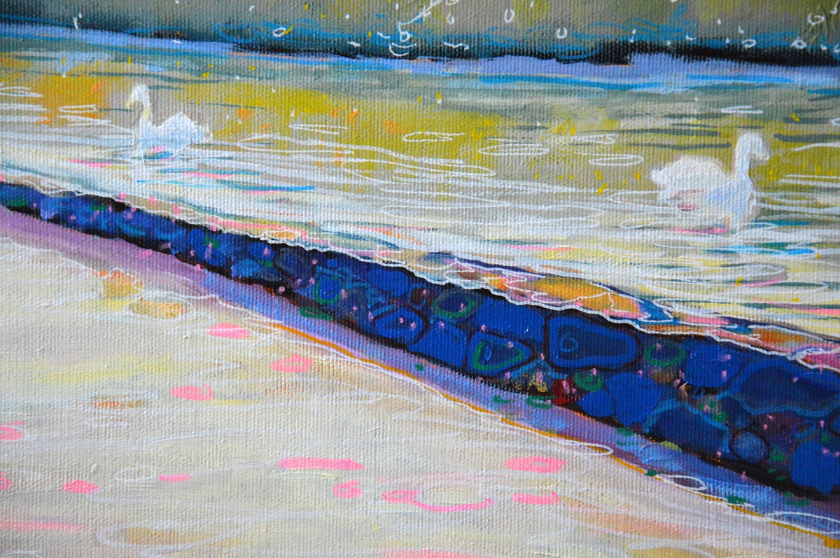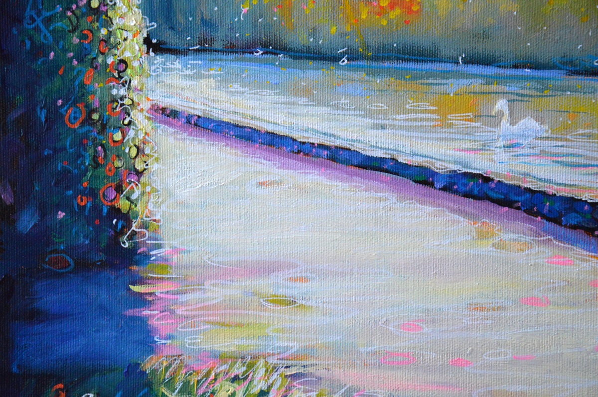 Wysokie żywopłoty Parku Oliwskiego już od rana dzielą przestrzeń na strefy światła i mroku. Kiedy słońce pojawia się tuż nad drzewami ogrzewa spokojną taflę Stawu Łabędziego i podświetla przybrzeżne zarośla. Stojąc tu w cieniu wielkiej magnolii wodzę wzrokiem po rozżarzonych konturach jej sękatych gałęzi, po gęstwinie skórzastych liści.