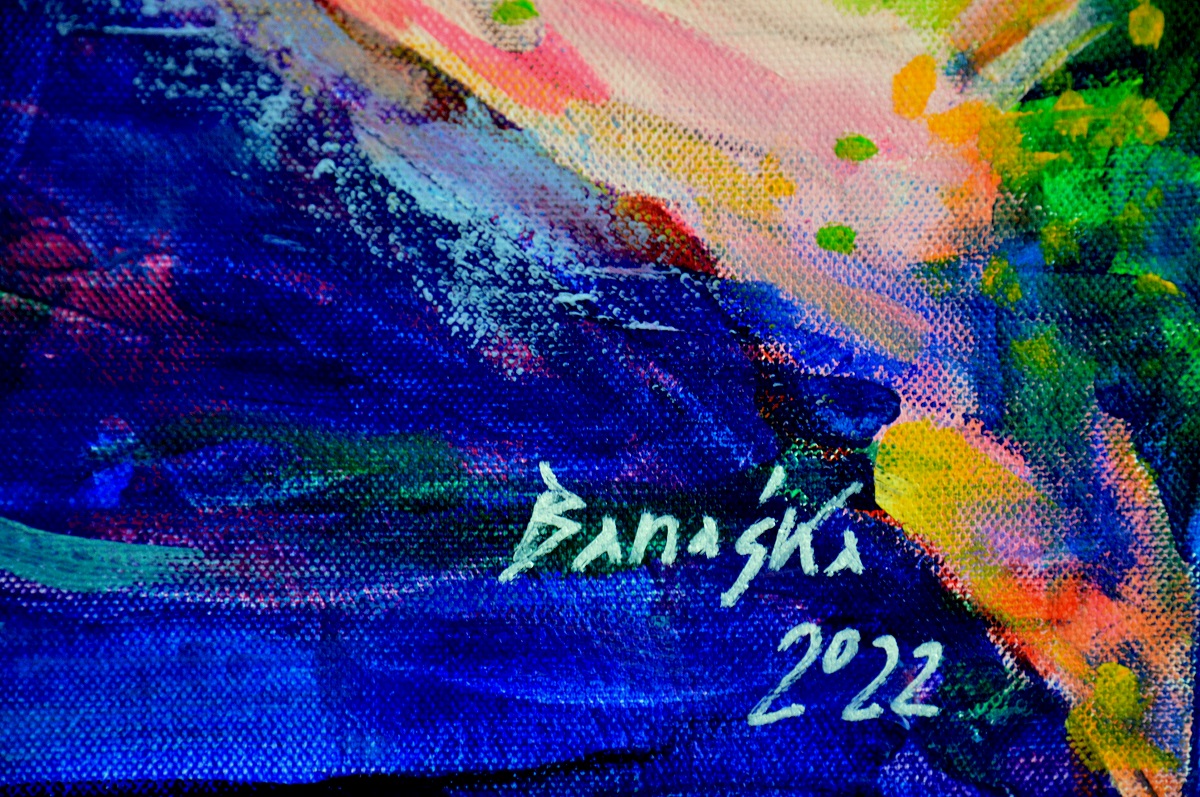 Oryginał. Rok powstania: 2022. Technika: akryl. Podobrazie: płótno bawełniane naciągnięte na drewnianą ramę. Rozmiar obrazu: wysokość 73cm, szerokość 60cm. Boki obrazów zamalowane na granatowo. Kolory obrazu mogą nieznacznie różnić się od oryginału w zależności od kalibracji monitorów.
