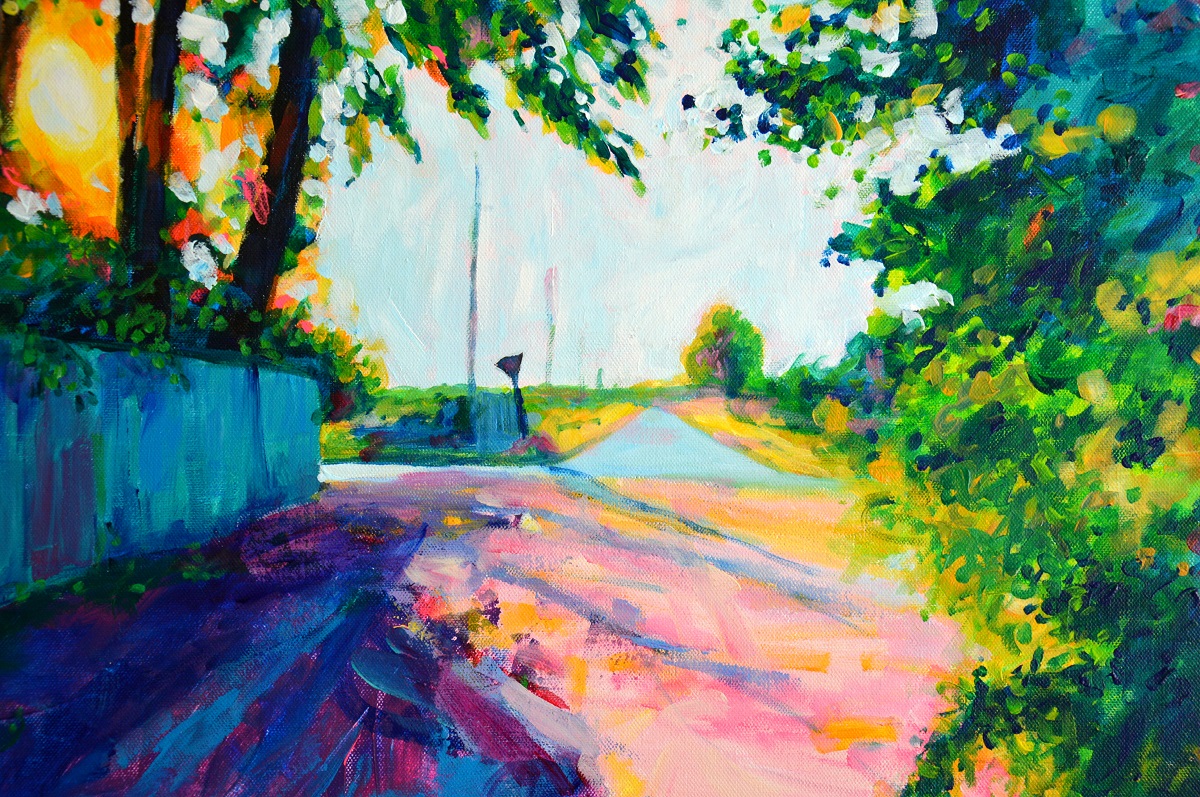 Obraz był prezentowany na wernisażu „Barwy dróg” 28.08.2022 w Świetlicy w Tomaszowie.