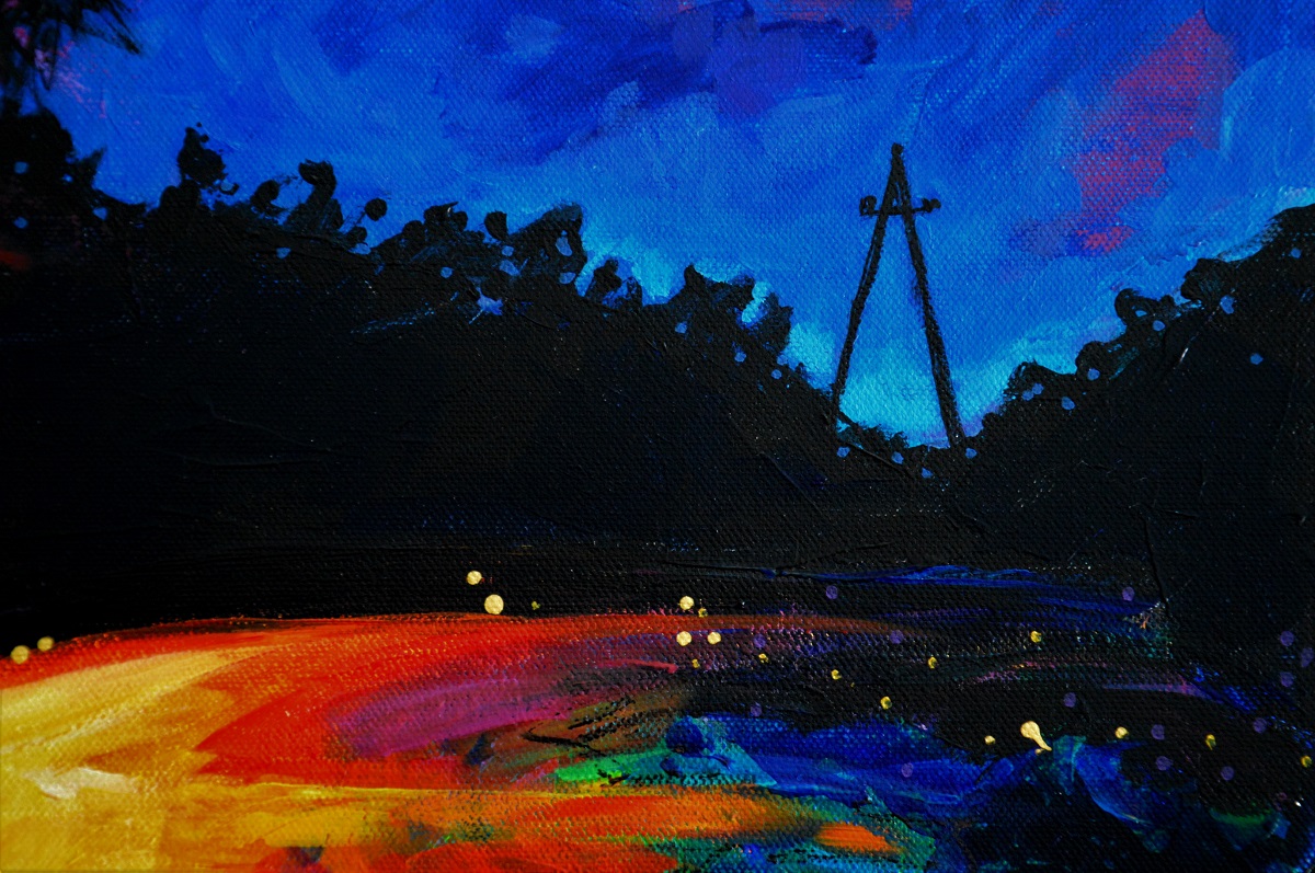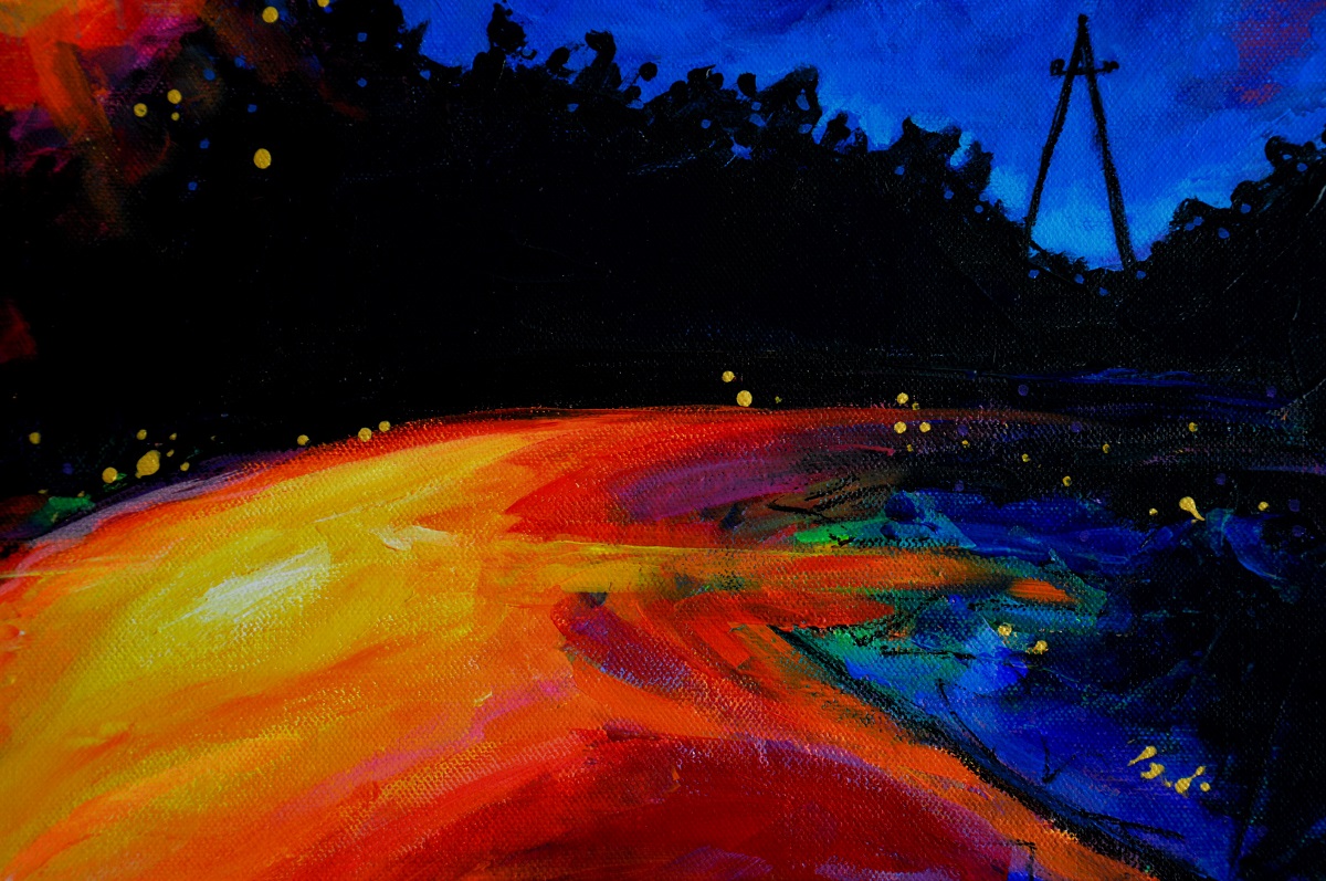Nocny pejzaż z drogą o nasyconych, mocnych barwach.