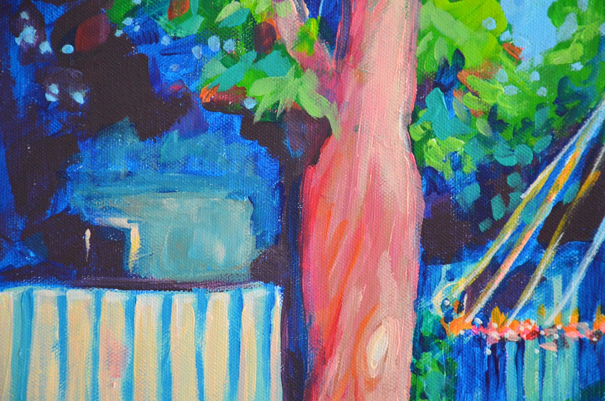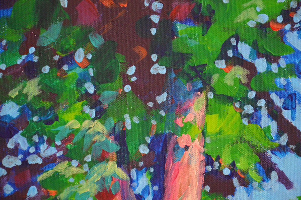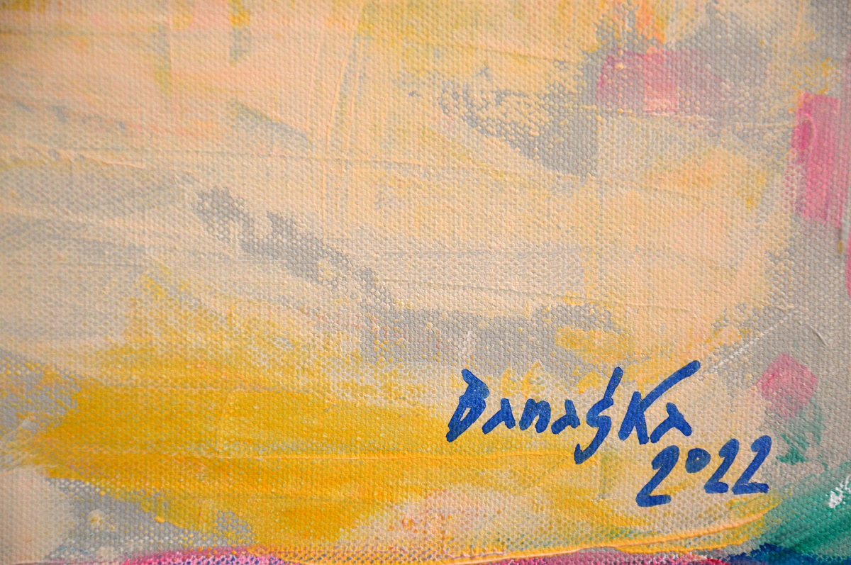 Oryginał. Rok powstania: 2022. Technika: akryl. Podobrazie: płótno bawełniane naciągnięte na drewnianą ramę. Rozmiar obrazu: wysokość 60cm, szerokość 73cm. Boki obrazów zamalowane na granatowo. Kolory obrazu mogą nieznacznie różnić się od oryginału w zależności od kalibracji monitorów.