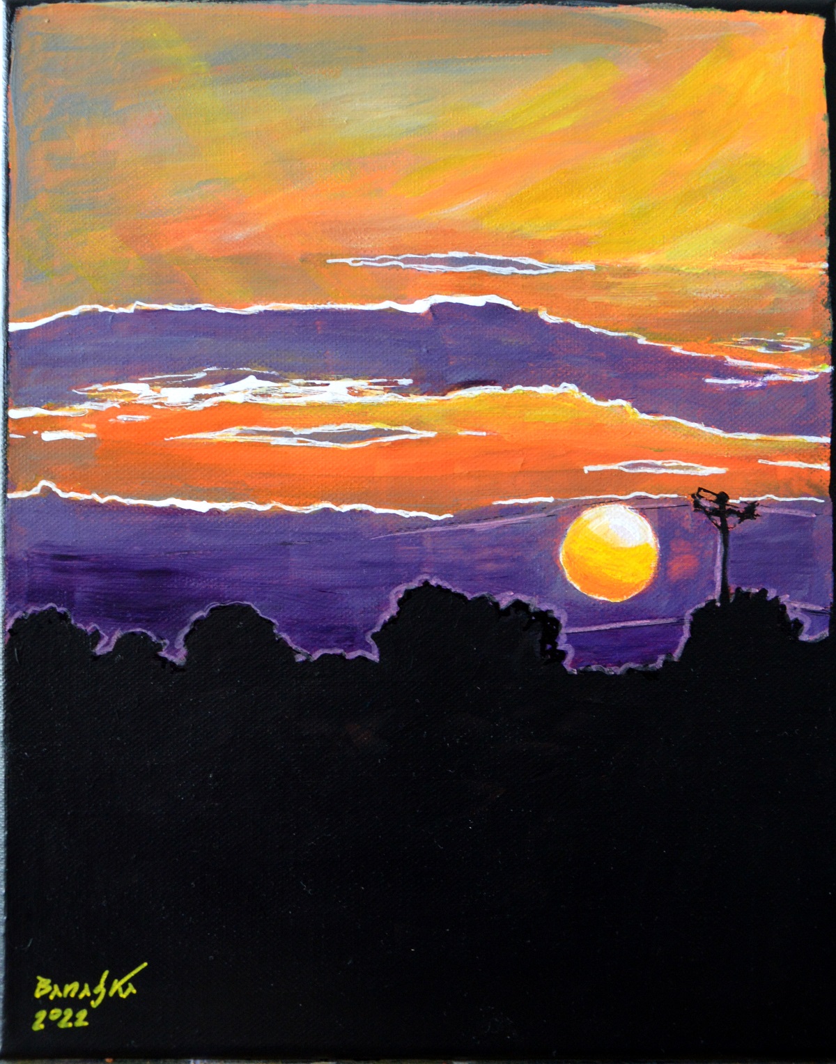 Oryginał. Rok powstania: 2022. Technika: akryl. Podobrazie: płótno bawełniane naciągnięte na drewnianą ramę. Rozmiar obrazu: wysokość 30cm, szerokość 24cm. Boki obrazów zamalowane na czarno. Kolory obrazu mogą nieznacznie różnić się od oryginału w zależności od kalibracji monitorów.