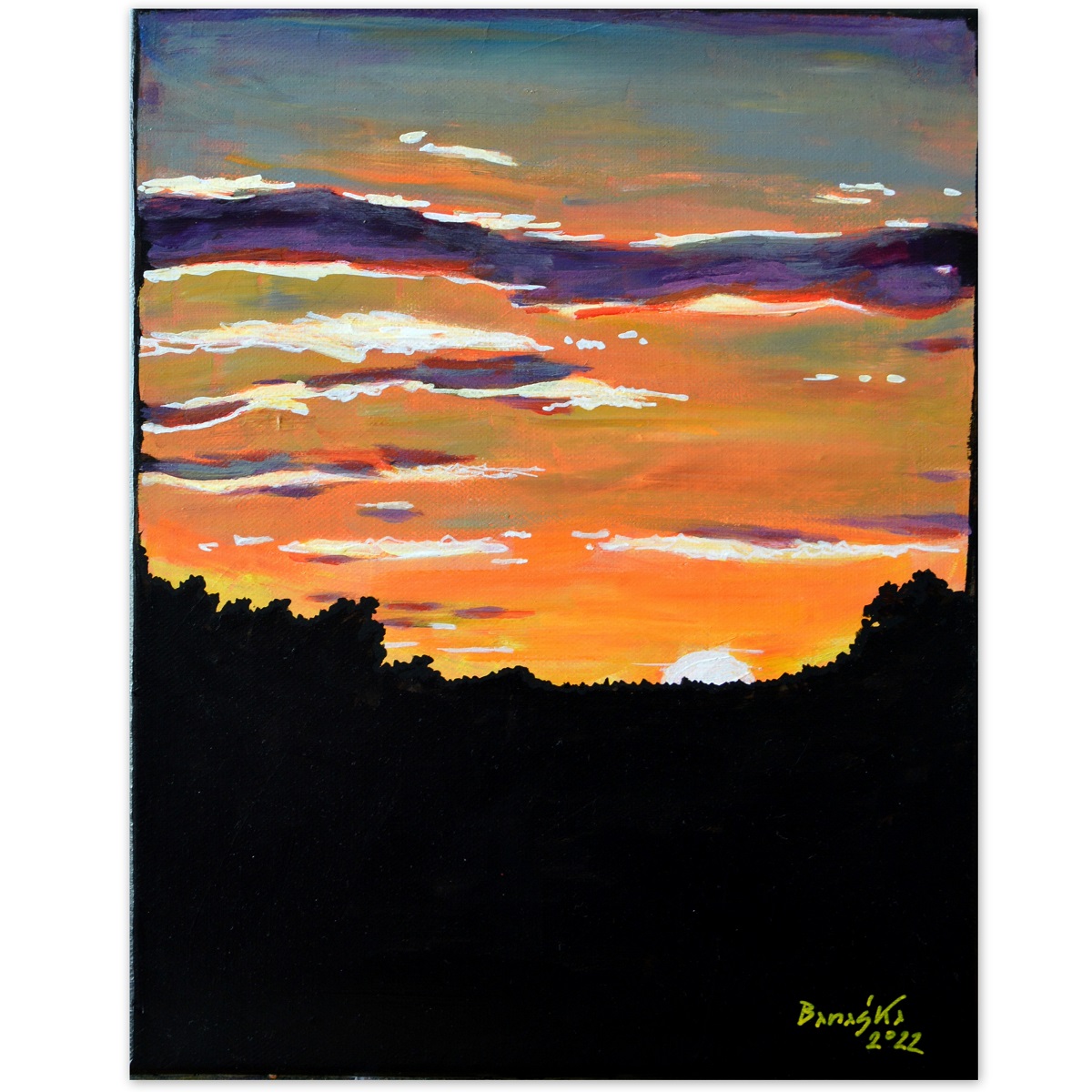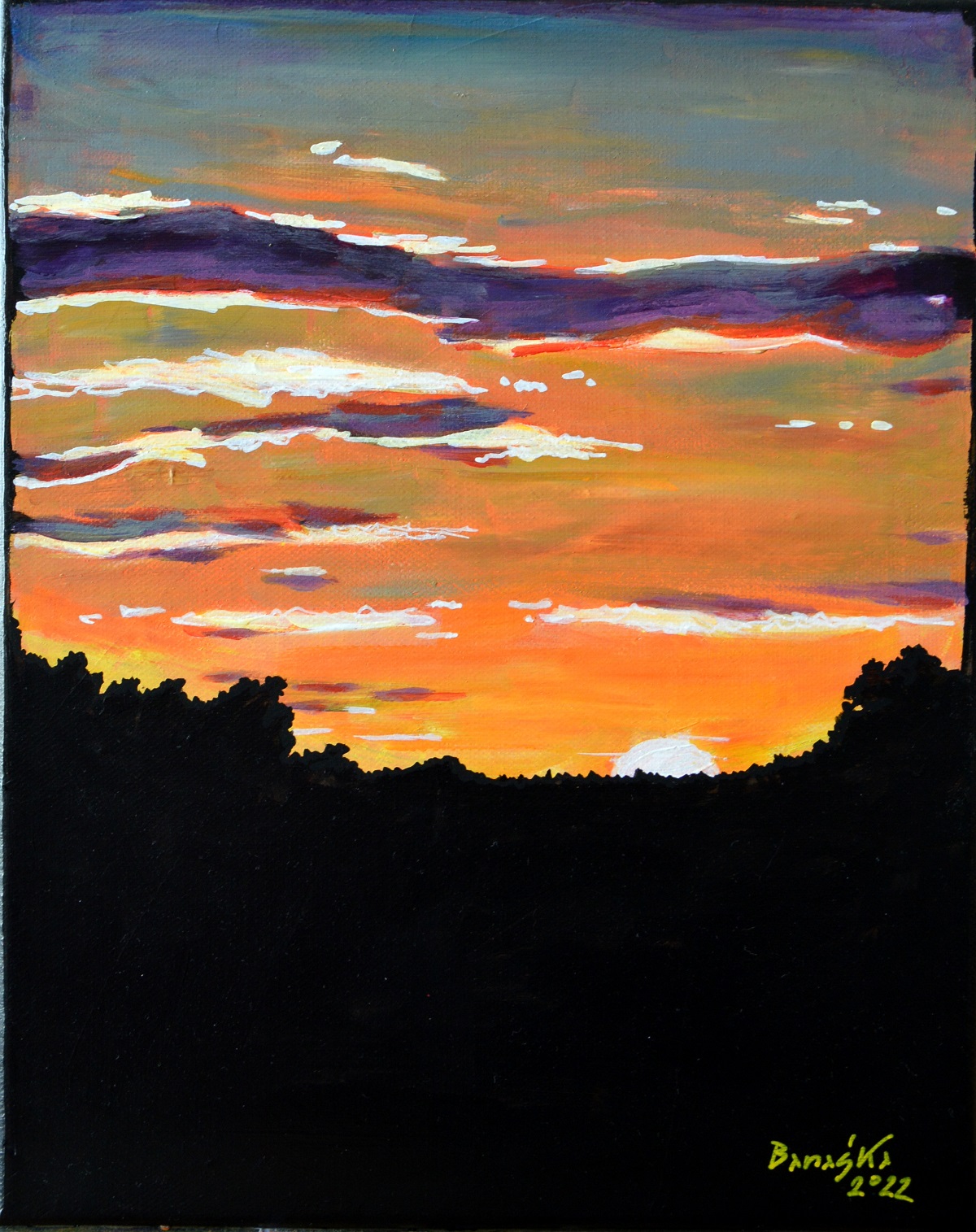 Oryginał. Rok powstania: 2022. Technika: akryl. Podobrazie: płótno bawełniane naciągnięte na drewnianą ramę. Rozmiar obrazu: wysokość 30cm, szerokość 24cm. Boki obrazów zamalowane na czarno. Kolory obrazu mogą nieznacznie różnić się od oryginału w zależności od kalibracji monitorów.