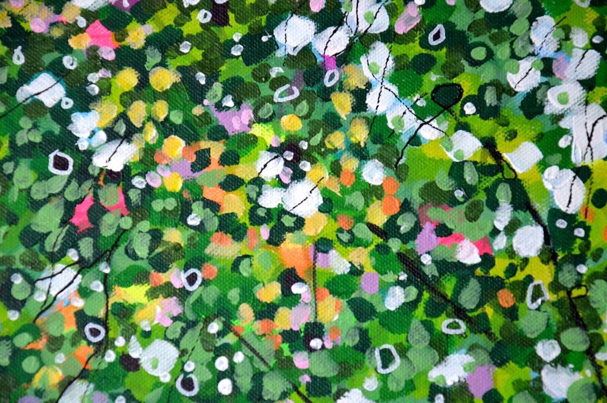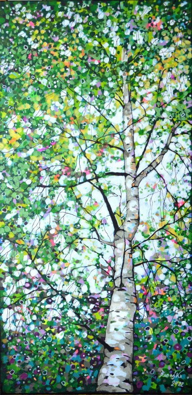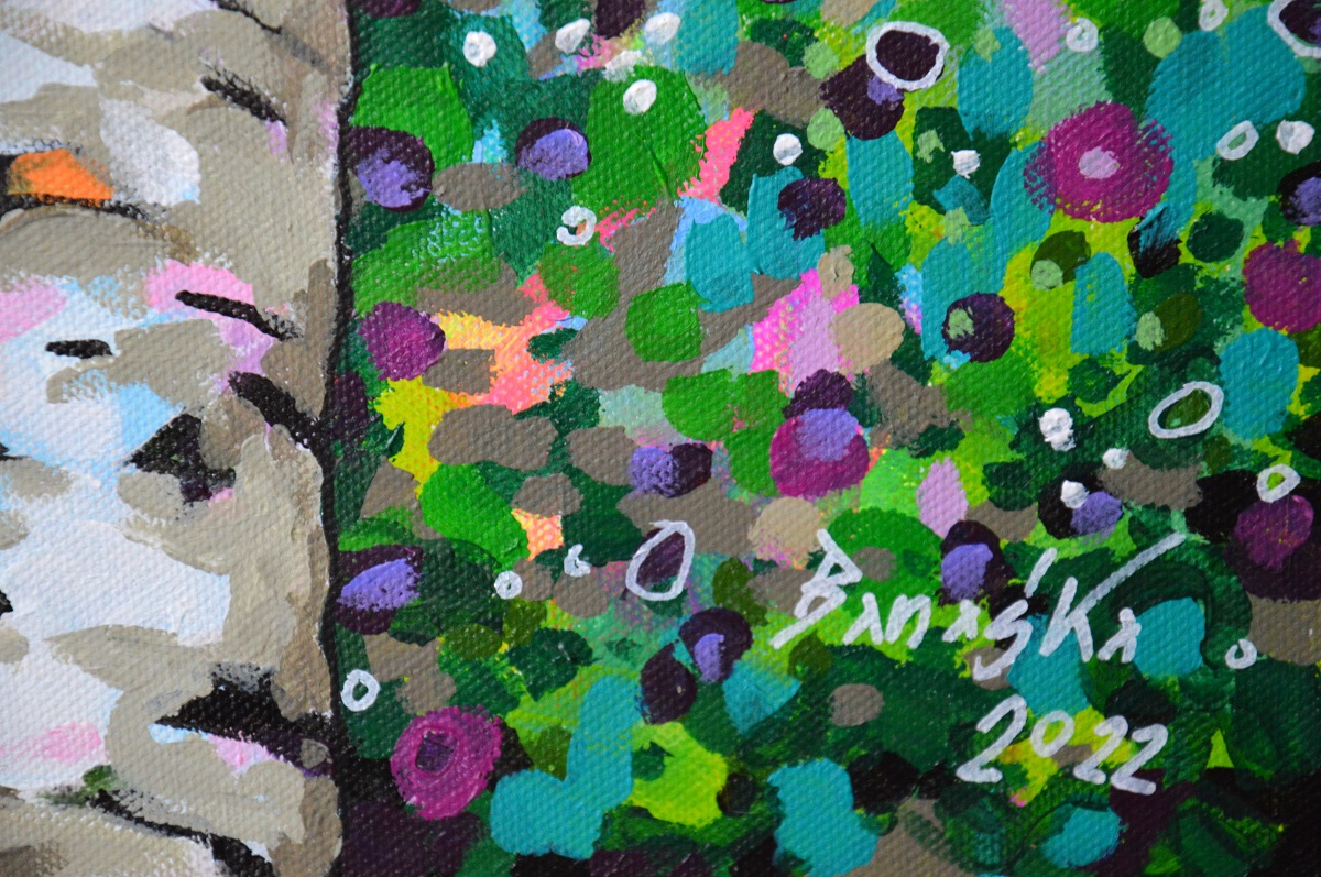 Oryginał. Rok powstania: 2022. Technika: akryl i pisaki. Podobrazie: płótno bawełniane naciągnięte na drewnianą ramę. Rozmiar obrazu: wysokość 90cm, szerokość 45cm. Boki obrazów zamalowane na czarno. Kolory obrazu mogą nieznacznie różnić się od oryginału w zależności od kalibracji monitorów.