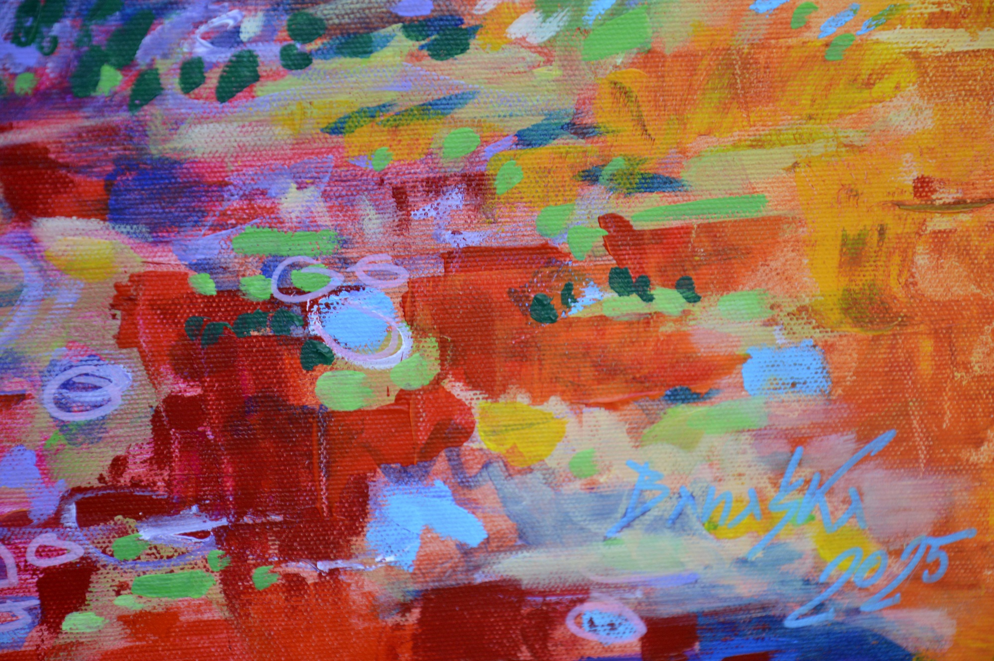 Oryginał. Rok powstania: 2025. Technika: akryl i pisaki. Podobrazie: płótno bawełniane naciągnięte na drewnianą ramę. Rozmiar obrazu: wysokość 100cm, szerokość 70cm. Boki obrazów zamalowane na czarno. Kolory obrazu mogą nieznacznie różnić się od oryginału w zależności od kalibracji monitorów.