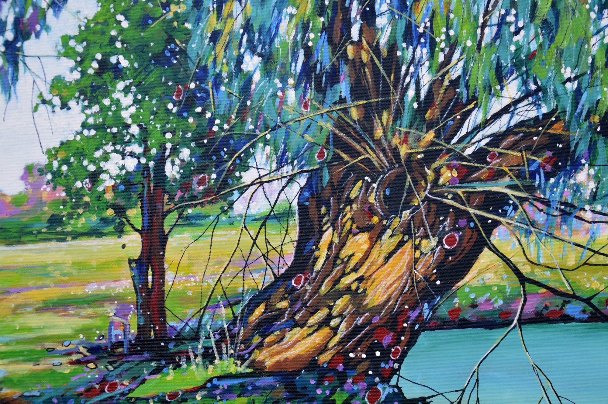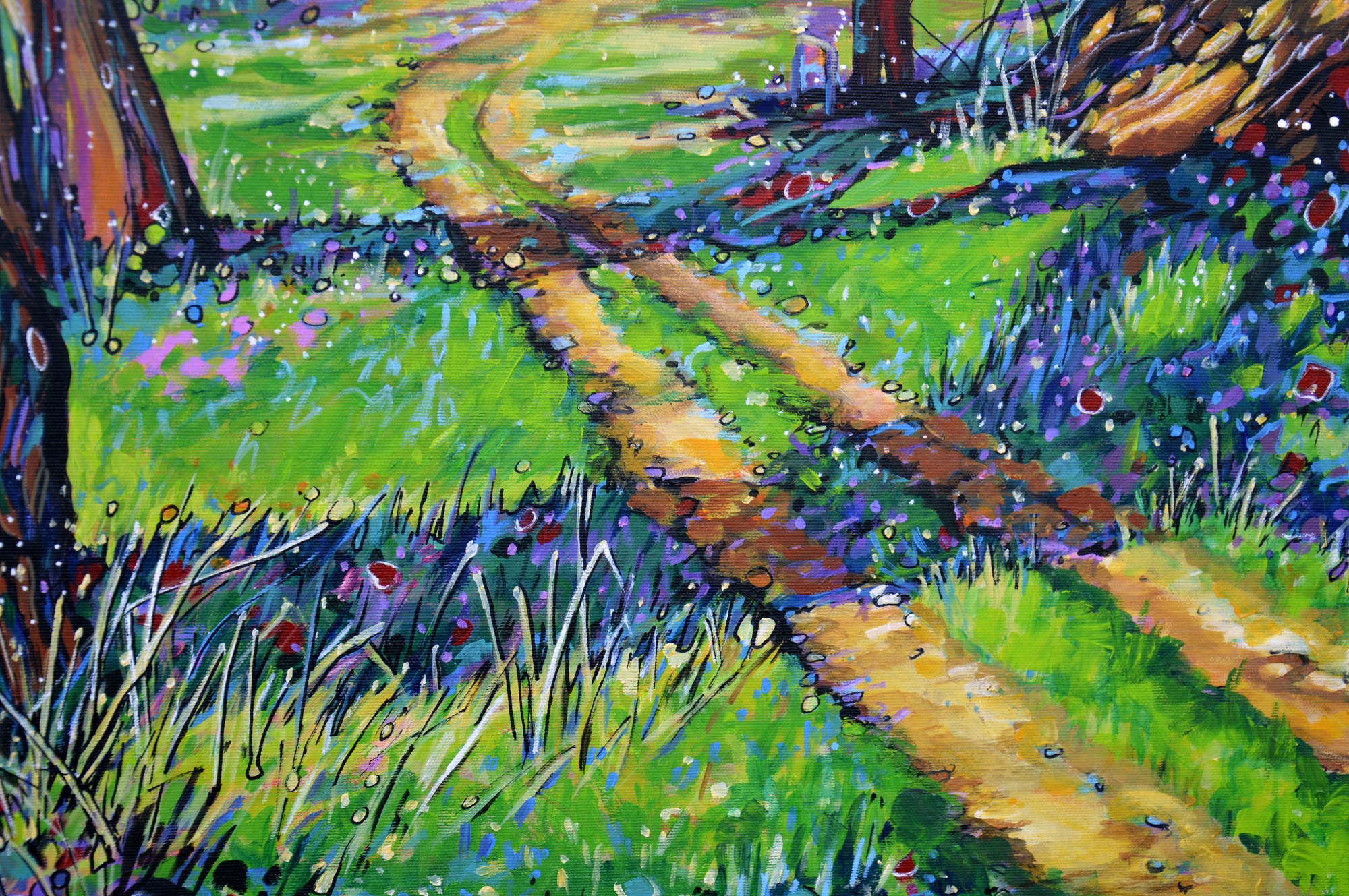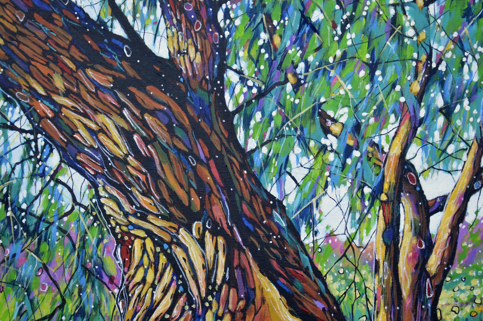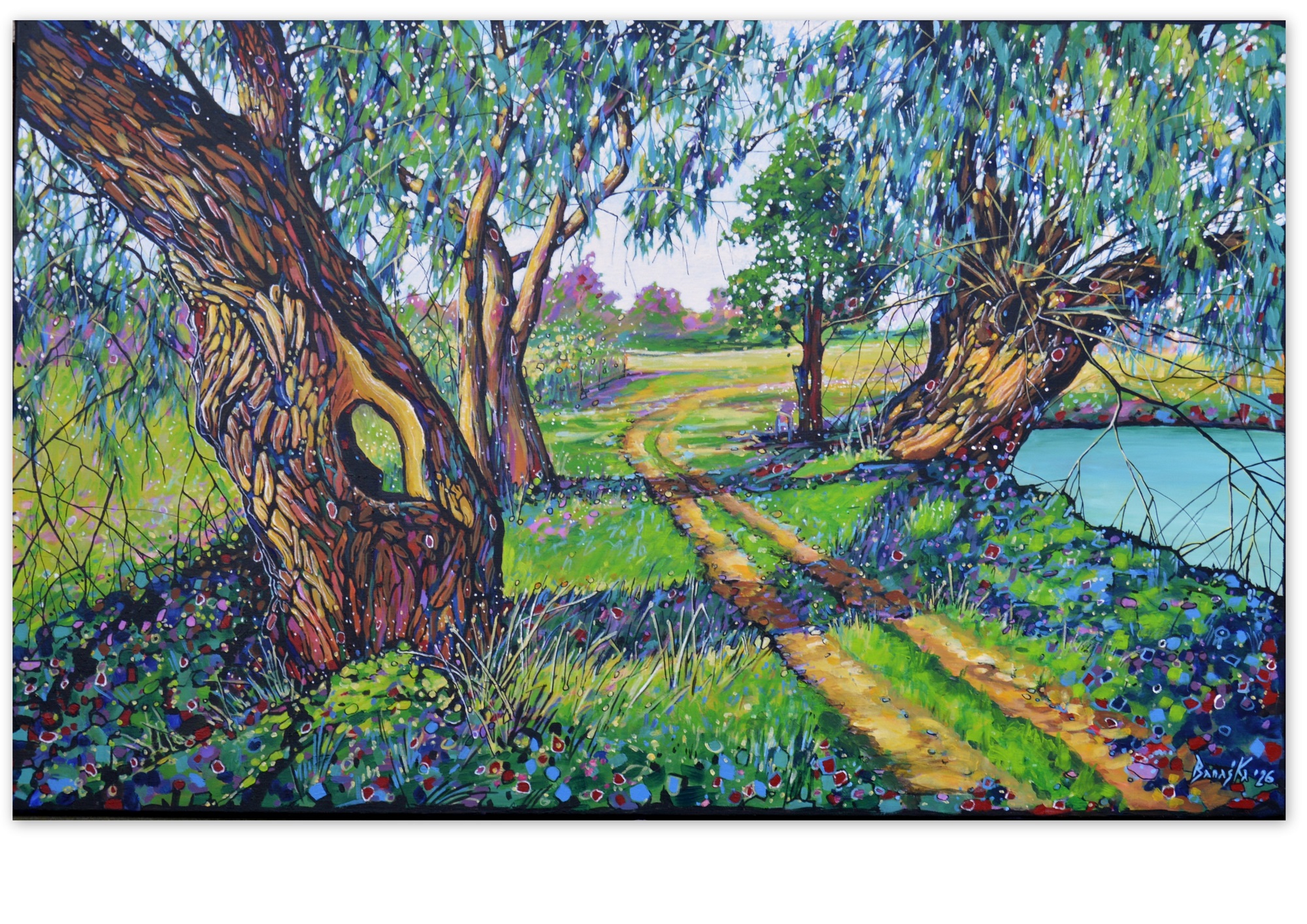 Oryginał. Rok powstania: 2026. Technika: akryl i pisaki. Podobrazie: płótno bawełniane naciągnięte na drewnianą ramę. Rozmiar obrazu: wysokość 75cm, szerokość 120cm. Boki obrazów zamalowane na czarno. Kolory obrazu mogą nieznacznie różnić się od oryginału w zależności od kalibracji monitorów.