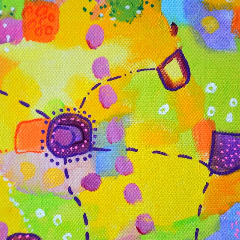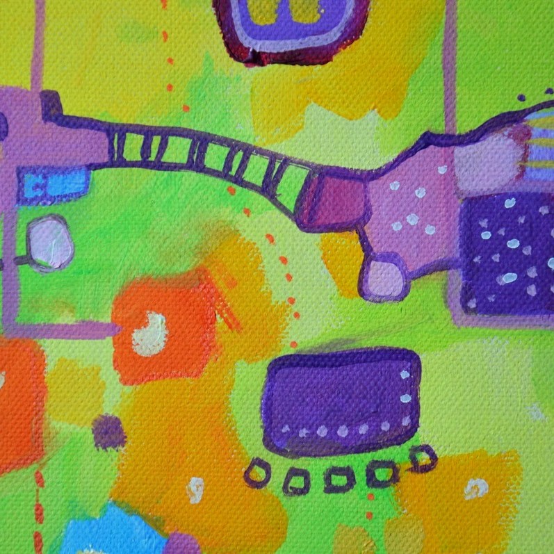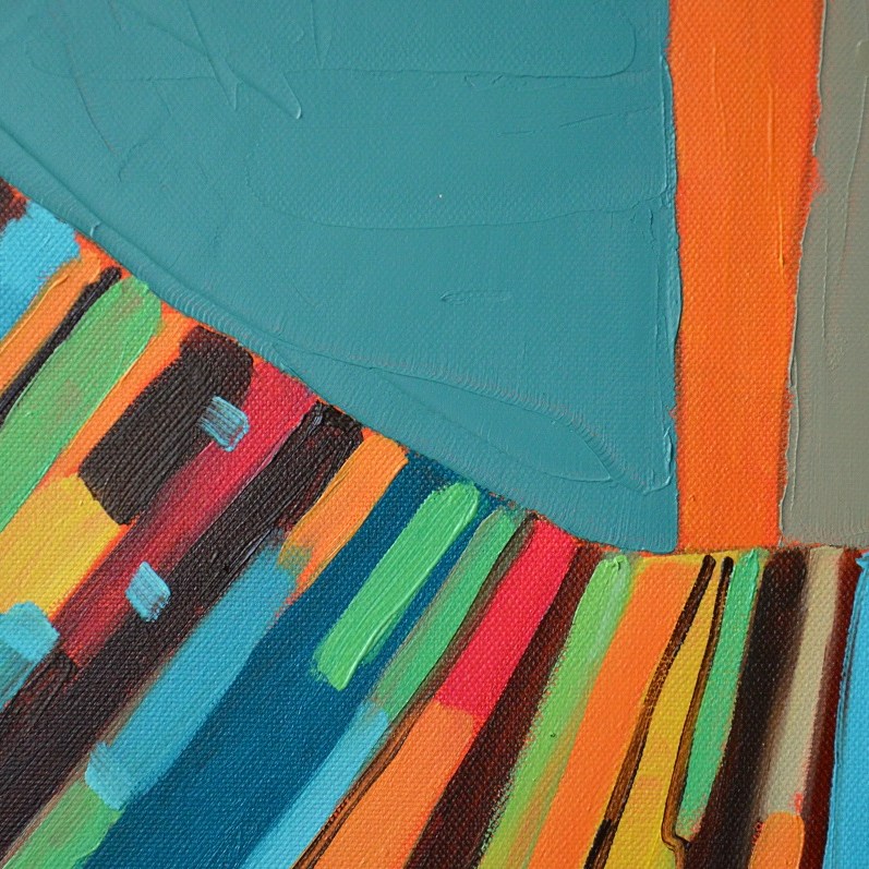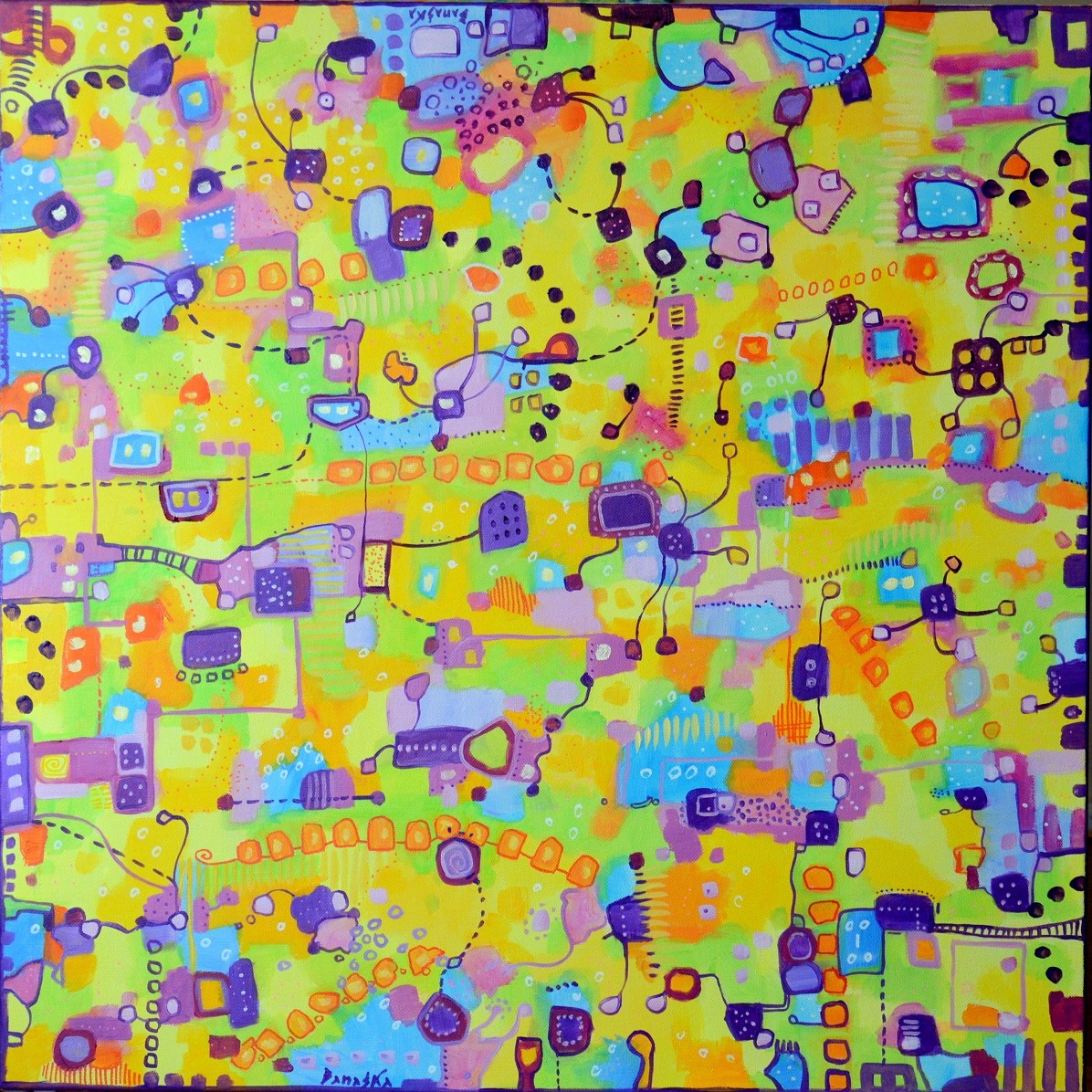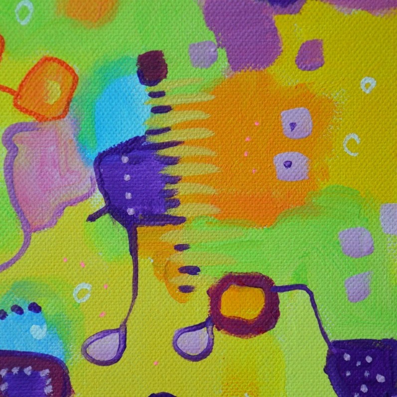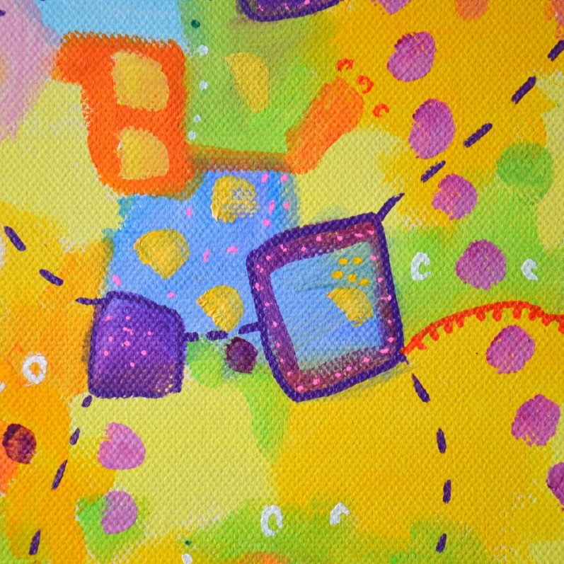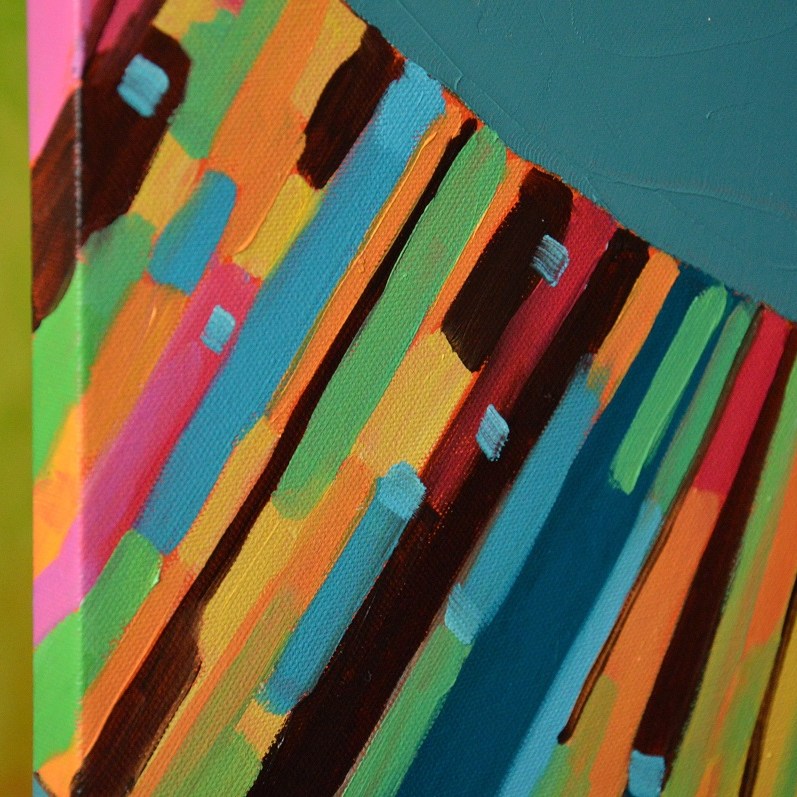 Barwna abstrakcja w niezwykle żywej kolrystyce. Można wieszać „na dowolnym boku”, nie ma wyznaczego układu góra-dół.