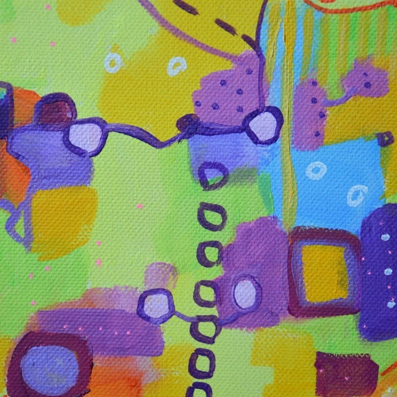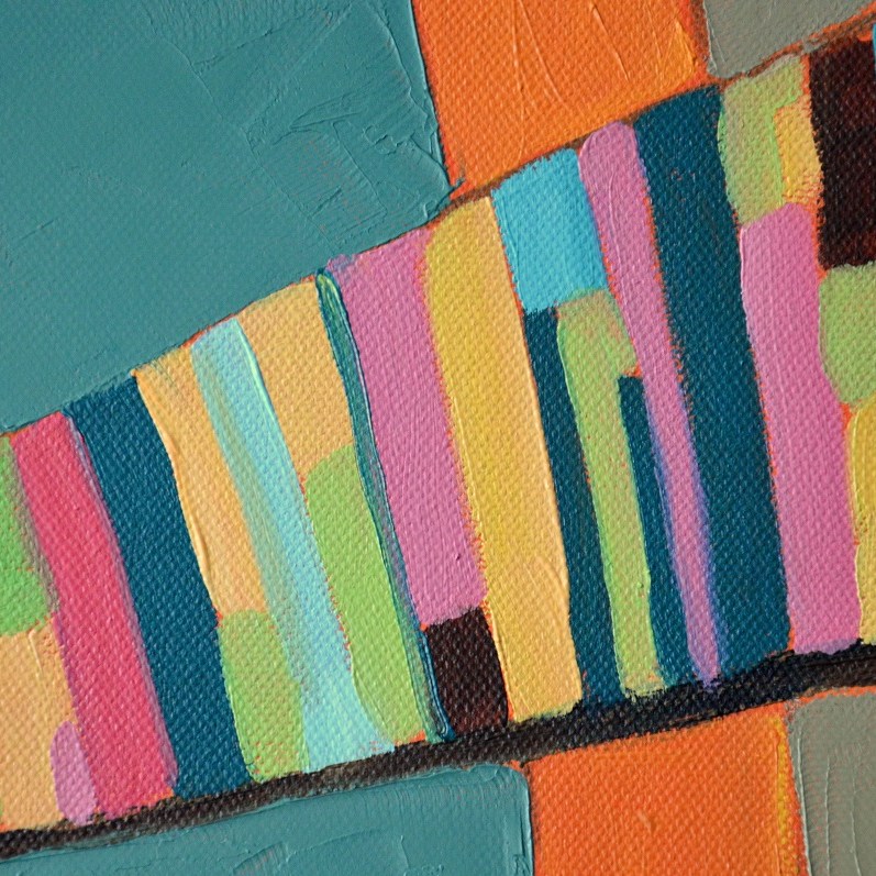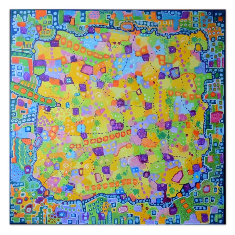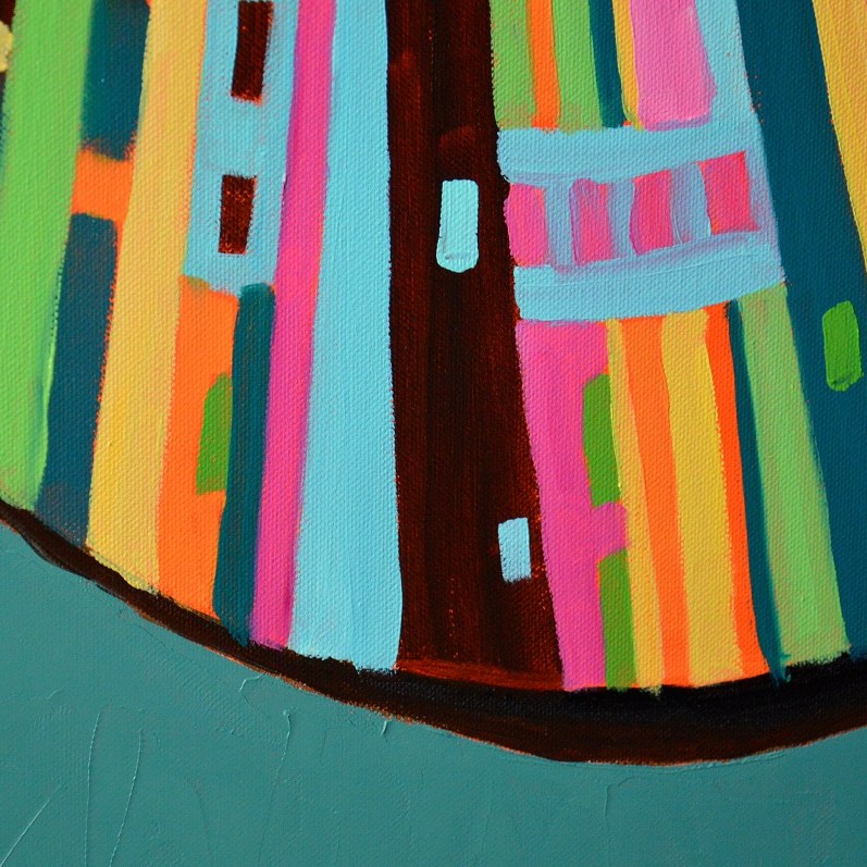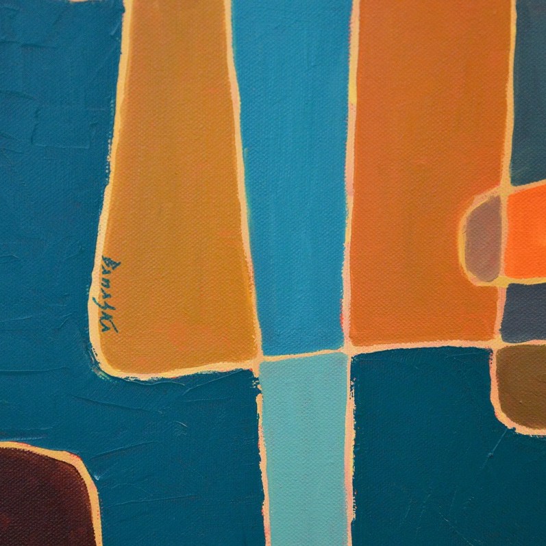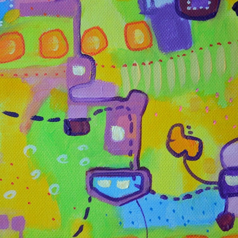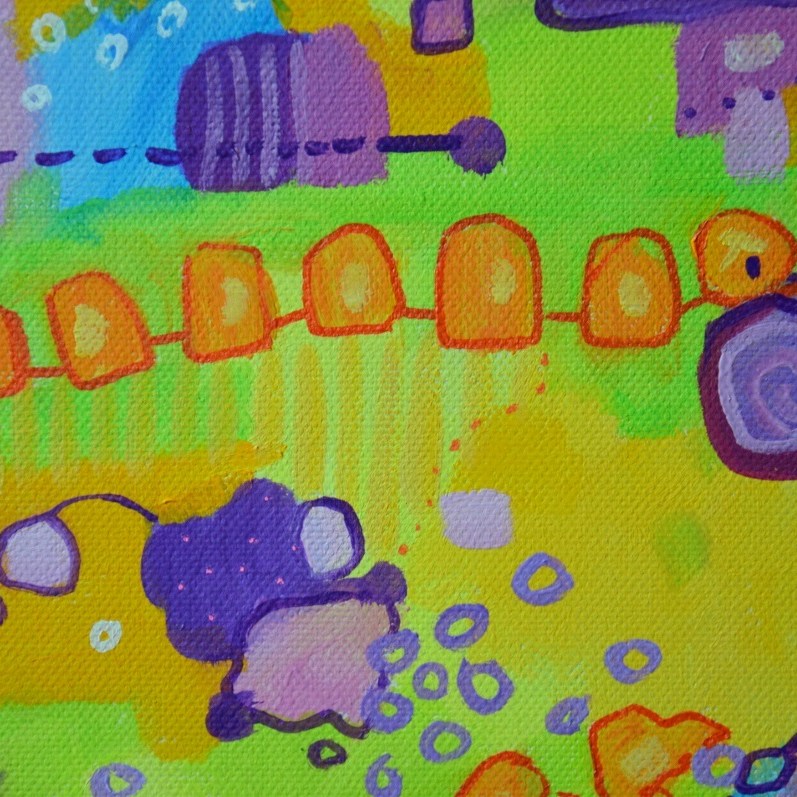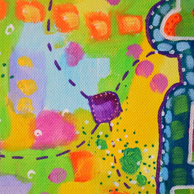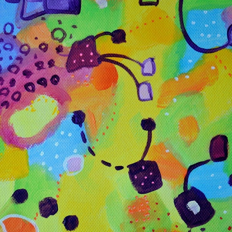 Barwna abstrakcja w niezwykle żywej kolrystyce. Można wieszać „na dowolnym boku”, nie ma wyznaczego układu góra-dół.
