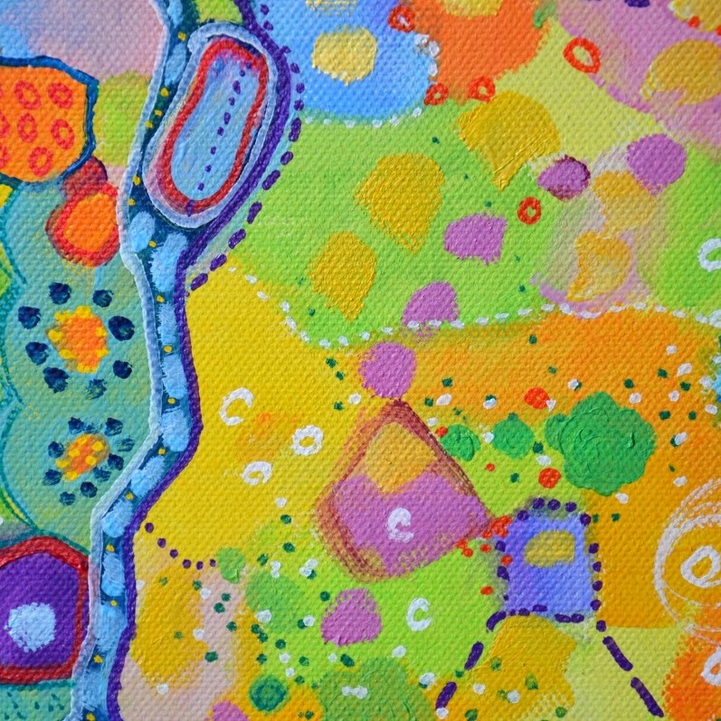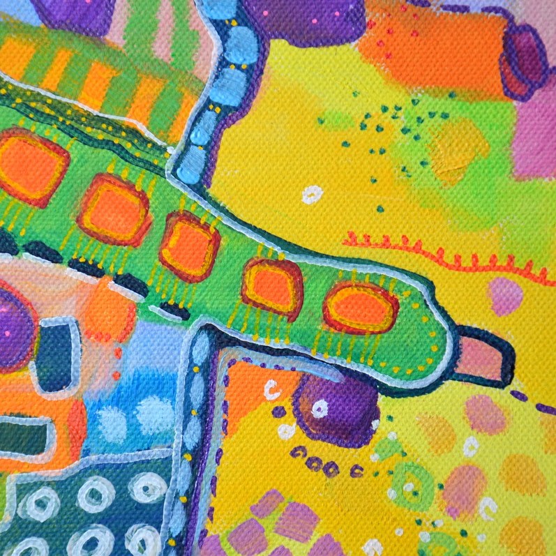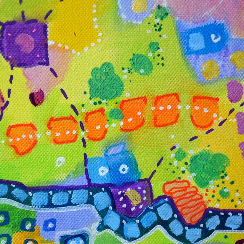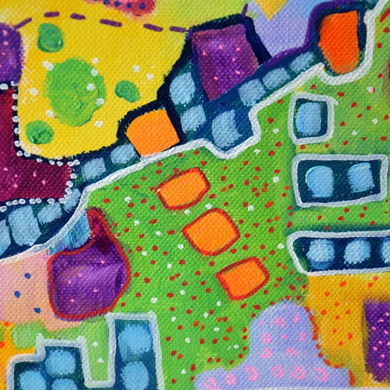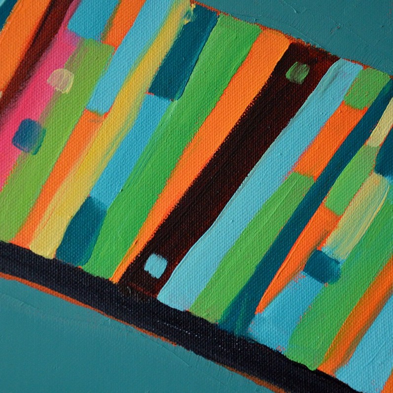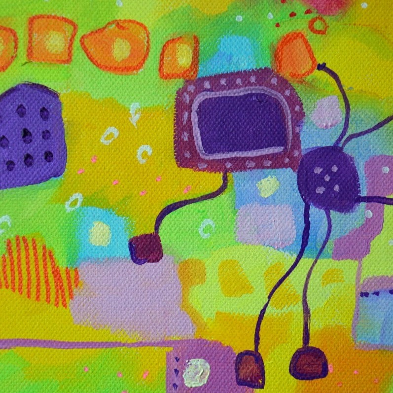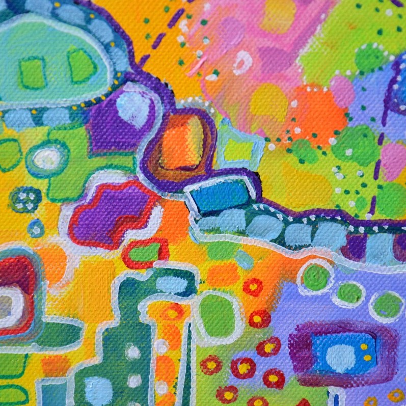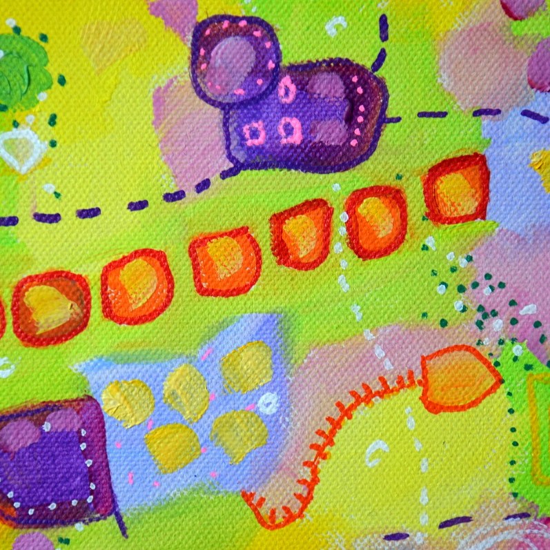 Barwna abstrakcja w niezwykle żywej kolrystyce. Można wieszać „na dowolnym boku”, nie ma wyznaczego układu góra-dół.
